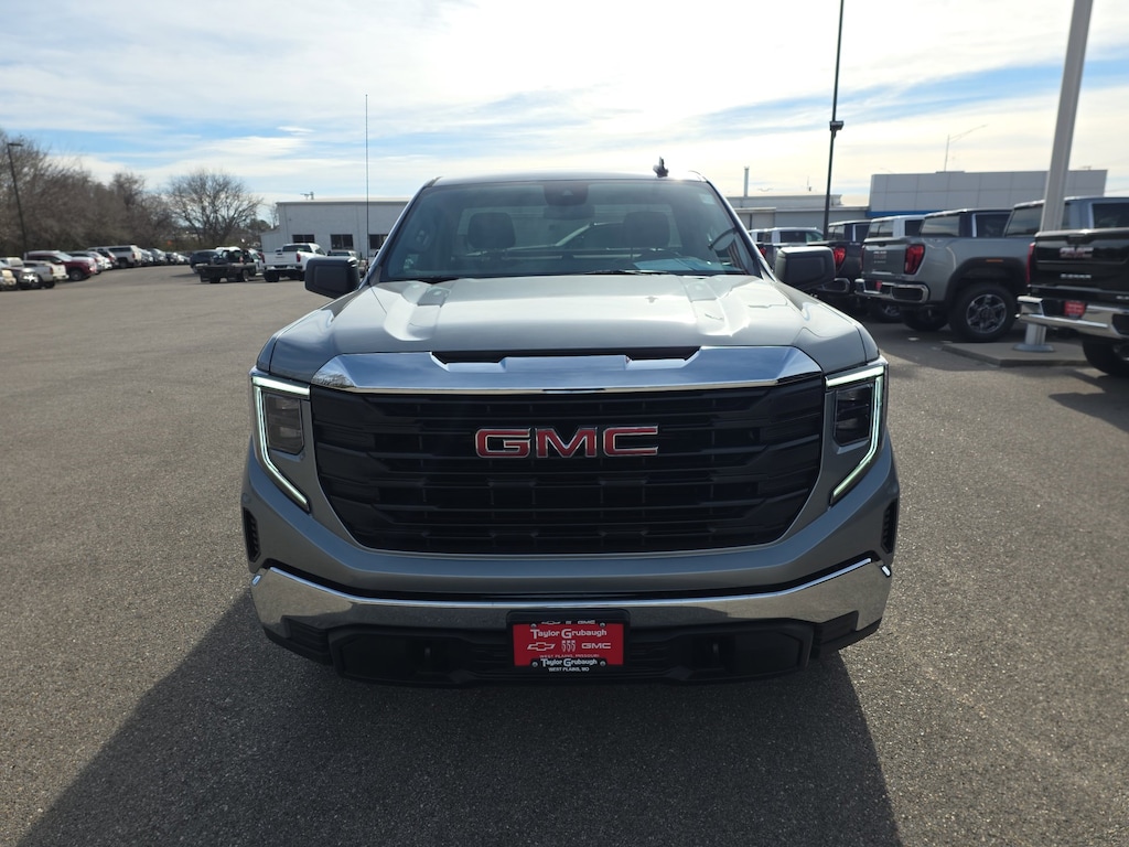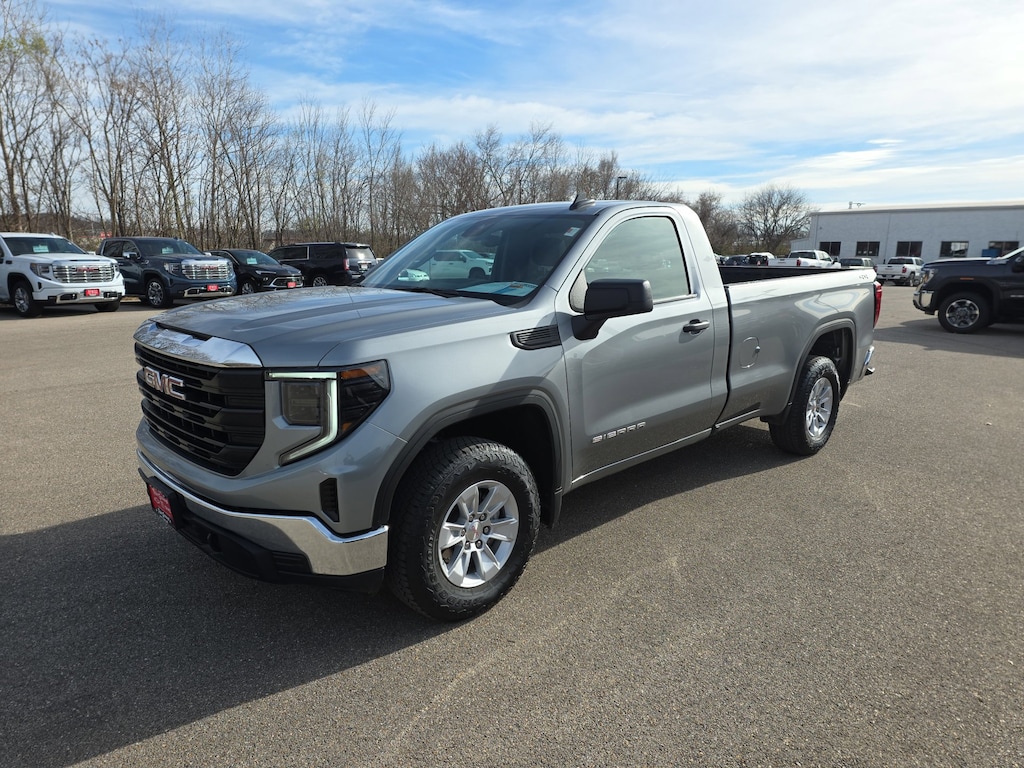 Remote Start, Bluetooth, Rear Camera, Intelink Radio, Low Miles, One Owner, Local Trade, Sierra 1500 Pro, GM Certified, 2D Standard Cab, EcoTec3 5.3L V8, 10-Speed Automatic, 4WD, Sterling Metallic, Black Cloth, 10-Way Power Driver Seat Adjuster w/Lumbar, 120-Volt Bed Mounted Power Outlet, 120-Volt Interior Power Outlet, 170 Amp Alternator, 2 Charge/Data USB Ports, 2 Speakers, 2-Speaker Audio System Feature, 220 Amp Alternator, 4-Way Manual Driver Seat Adjuster, 4-Way Manual Passenger Seat Adjuster, 4-Wheel Disc Brakes, ABS brakes, Air Conditioning, AM/FM radio, Apple CarPlay/Android Auto, Auto High-beam Headlights, Auto-Locking Rear Differential, Automatic Emergency Braking, Auxiliary External Transmission Oil Cooler, Brake assist, Buckle to Drive, Bumpers: chrome, Chrome Header w/Flat Black Grille Insert Bars, Color-Keyed Carpeting Floor Covering, Compass, Convenience Package, Deep-Tinted Glass, Delay-off headlights, Driver door bin, Dual front impact airbags, Dual front side impact airbags, Electric Rear-Window Defogger, Electronic Stability Control, Emergency communication system: OnStar, External Engine Oil Cooling, EZ Lift Power Lock & Release Tailgate, Following Distance Indicator, Forward Collision Alert, Front 40/20/40 Split-Bench Seat, Front anti-roll bar, Front Center Armrest w/Storage, Front Frame-Mounted Black Recovery Hooks, Front License Plate Kit, Front Pedestrian Braking, Front reading lights, Front Rubberized-Vinyl Floor Mats, Front wheel independent suspension, Fully automatic headlights, HD Rear Vision Camera, Heated door mirrors, Hitch Guidance, Illuminated entry, IntelliBeam Automatic High Beam On/Off, Lane Keep Assist w/Lane Departure Warning, LED Cargo Area Lighting, Low tire pressure warning, Occupant sensing airbag, OnStar Services Capable, Outside temperature display, Overhead airbag, Overhead console, Panic alarm, Passenger door bin, Passenger vanity mirror, Power Door Locks, Power door mirrors, Power Front Windows w/Driver Express Up/Down, Power Front Windows w/Passenger Express Down, Power steering, Power windows, Preferred Equipment Group 1SA, Pro Value Package, Push Button Start, Radio data system, Radio: GMC Infotainment Audio System, Rear reading lights, Rear step bumper, Remote Keyless Entry, Remote keyless entry, Solar Absorbing Tinted Glass, Speed control, Speed-sensing steering, Standard Suspension Package, Tachometer, Tilt steering wheel, Traction control, Trailering Package, Trip computer, Variably intermittent wipers, Vinyl Seat Trim, Voltmeter, Wheels: 17 x 8 Bright Silver Painted Aluminum, Wheels: 17 x 8 Silver Painted Steel, Wi-Fi Hotspot Capable, Wireless Apple CarPlay/Wireless Android Auto, Sierra 1500 Pro, 2D Standard Cab, EcoTec3 5.3L V8, 10-Speed Automatic, 4WD, Sterling Metallic, Black Cloth. Certified. Sterling Metallic 2025 GMC Sierra 1500 Pro EcoTec3 5.3L V8 10-Speed Automatic 4WD 2D Standard Cab