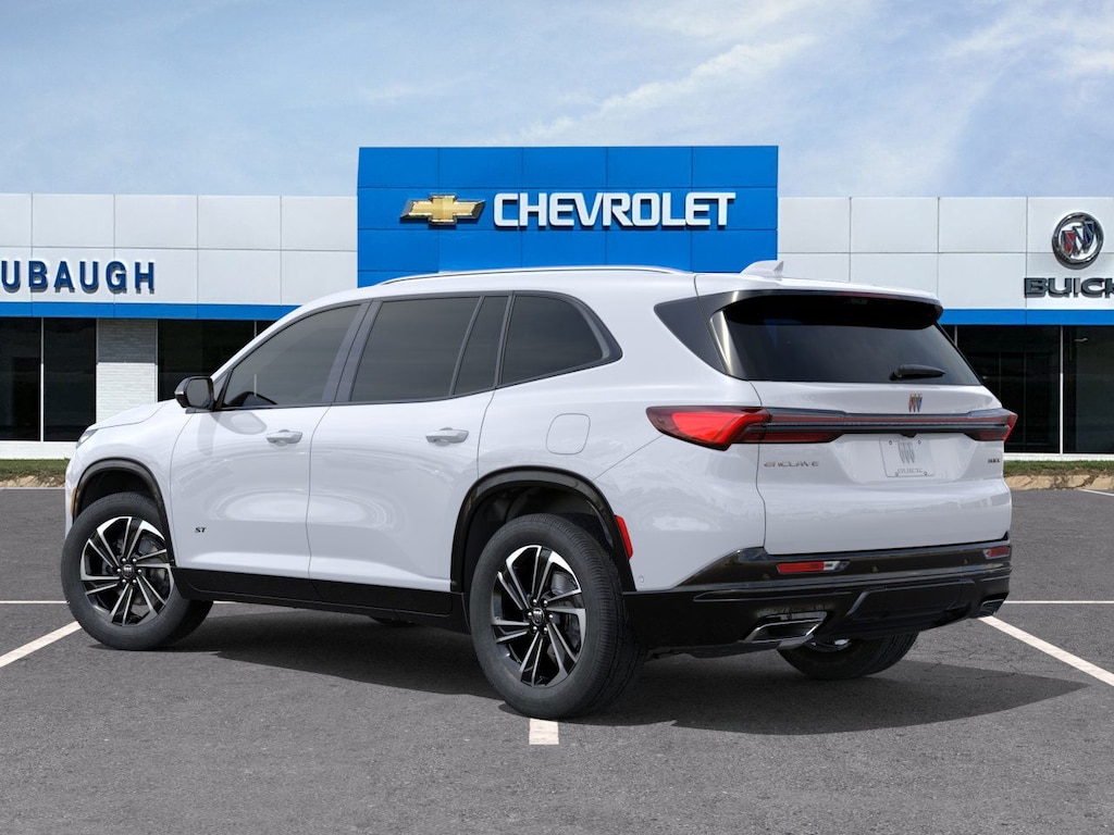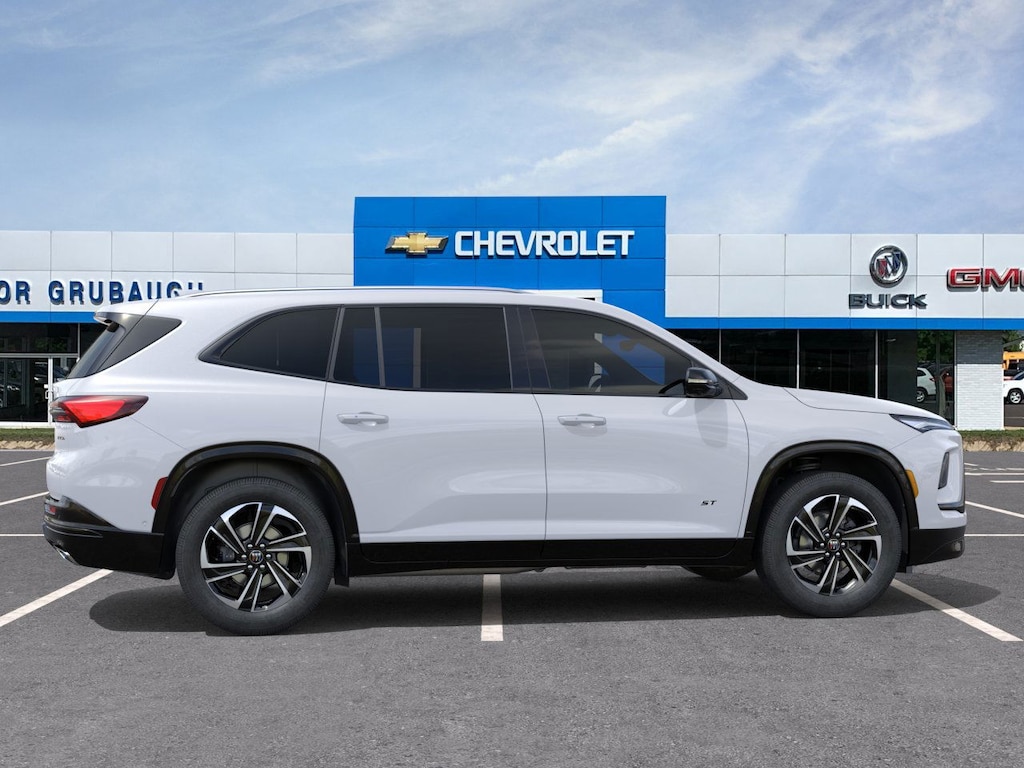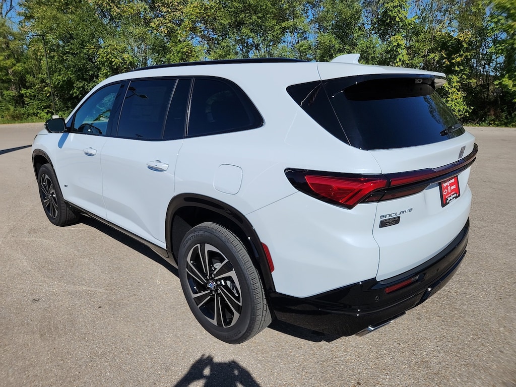 iridescent white tricoat 2026 Buick Enclave Sport Touring FWD 8-Speed Automatic 2.5L DOHC FWD, 110-Volt Power Outlet, 12 Speakers, 2nd Row 1-Touch Flat Folding Seat, 3rd Row 60/40 Power Split-Folding Bench Seat, 3rd row seats: split-bench, 4-Wheel Disc Brakes, ABS brakes, Air Conditioning, Alloy wheels, AM/FM radio: SiriusXM with 360L, Apple CarPlay/Android Auto, Auto High-beam Headlights, Auto-dimming door mirrors, Auto-dimming Rear-View mirror, Automatic temperature control, Bose Premium 12-Speaker Audio System with Subwoofer, Brake assist, Bumpers: body-color, Compass, Delay-off headlights, Driver 4-Way Power Lumbar Seat Adjuster, Driver 8-Way Power Seat Adjuster, Driver door bin, Driver vanity mirror, Dual front impact airbags, Dual front side impact airbags, Electronic Stability Control, Emergency communication system: OnStar and Buick connected services capable, Four wheel independent suspension, Front anti-roll bar, Front Bucket Seats, Front Center Armrest, Front dual zone A/C, Front Mounting License Plate Bracket Package, Front Passenger 4-Way Power Lumbar Seat Adjuster, Front Passenger 6-Way Power Seat Adjuster, Front reading lights, Fully automatic headlights, Head-Up Display, Heated door mirrors, Heated Driver and Front Passenger Seats, Heated front seats, Heated steering wheel, Heated Wiper Park, Illuminated entry, Inside Rearview Auo-Dimming Rear Camera Mirror, Leather steering wheel, Low tire pressure warning, Memory Settings, Navigation System, Occupant sensing airbag, Outside temperature display, Overhead airbag, Overhead console, Panic alarm, Passenger door bin, Passenger vanity mirror, Perforated Leatherette Seat Trim, Power door mirrors, Power driver seat, Power Liftgate, Power Package, Power passenger seat, Power steering, Power windows, Preferred Equipment Group 1SM, Premium audio system: Buick Infotainment System, Radio data system, Radio: Infotainment Center, Rear air conditioning, Rear anti-roll bar, Rear reading lights, Rear side impact airbag, Rear window defroster, Rear window wiper, Remote keyless entry, Security system, SiriusXM with 360L Trial Subscription, Speed control, Speed-sensing steering, Spoiler, Sport steering wheel, Steering wheel mounted audio controls, Tachometer, Telescoping steering wheel, Tilt steering wheel, Traction control, Trip computer, Turn signal indicator mirrors, Universal Home Remote, Variably intermittent wipers, Voltmeter, Wheels: 20 Alloy with High Gloss Black and Machine Finish, Wireless Apple CarPlay, Wireless Google Android Auto, FWD.