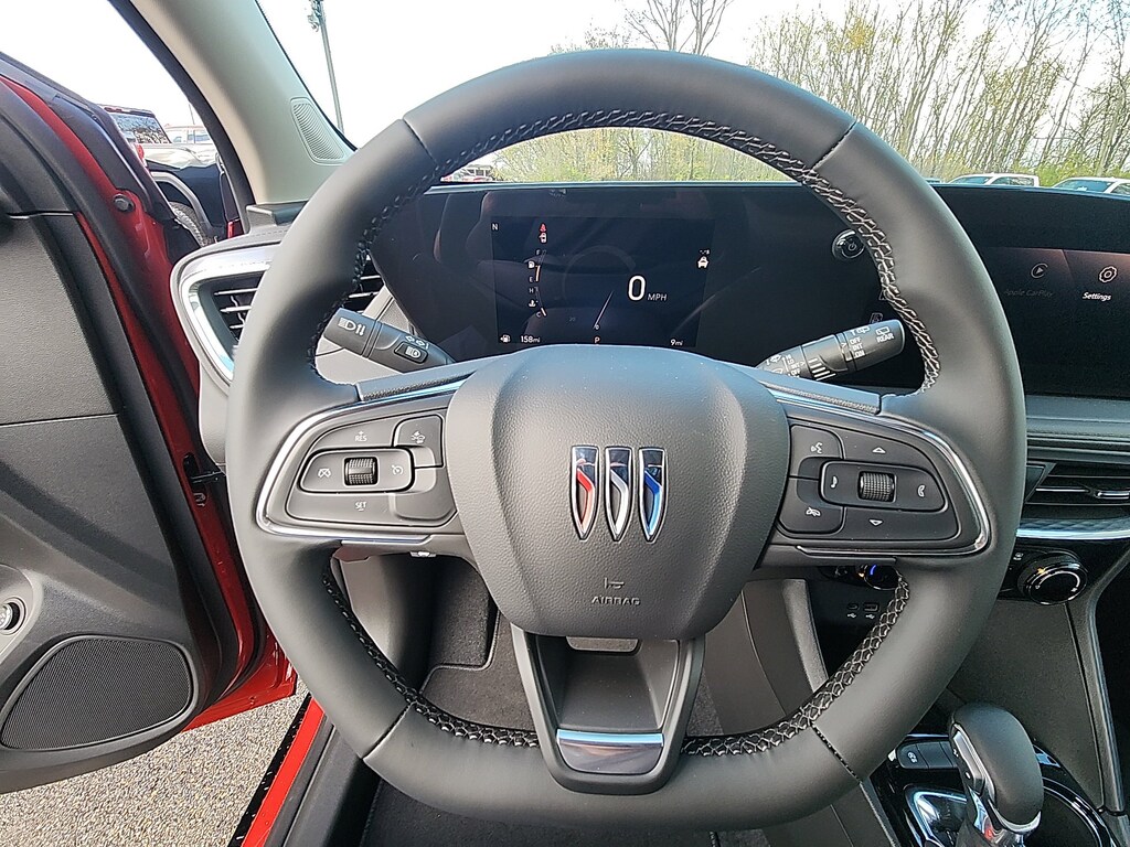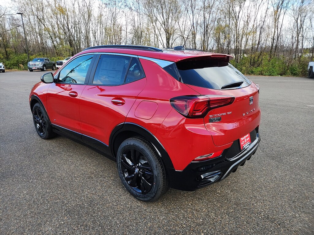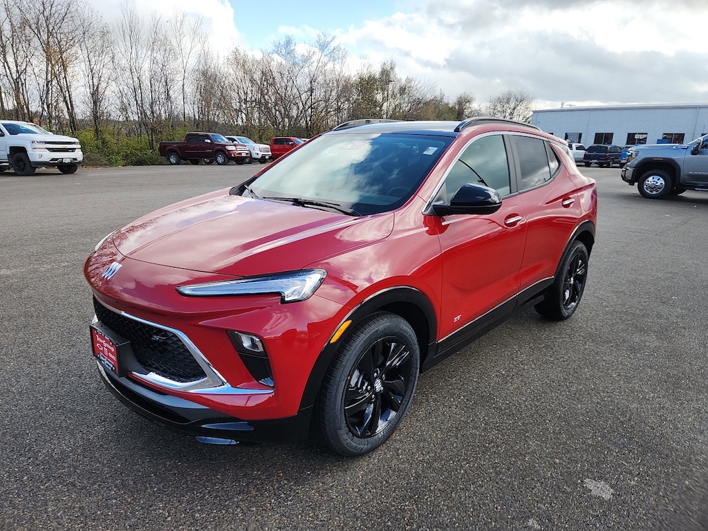 Brilliant Red 2026 Buick Encore GX Sport Touring FWD CVT ECOTEC 1.3L Turbo 4-Way Manual Passenger Seat Adjuster, 4-Wheel Disc Brakes, 5.45 Final Drive Axle Ratio, 6 Speakers, 6-Way Manual Driver Seat Adjuster, ABS brakes, Air Conditioning, Alloy wheels, AM/FM radio: SiriusXM, Auto High-beam Headlights, Automatic temperature control, Black Exterior Mirror Caps, Black Roof Package, Black Roof Panel, Black Roof Rails, Brake assist, Bumpers: body-color, Compass, Delay-off headlights, Driver door bin, Driver vanity mirror, Dual front impact airbags, Dual front side impact airbags, Electronic Stability Control, Emergency communication system: OnStar and Buick connected services capable, Enhanced Performance 6-Speaker System, Front anti-roll bar, Front Bucket Seats, Front Center Armrest, Front reading lights, Front wheel independent suspension, Fully automatic headlights, Heated door mirrors, Illuminated entry, Knee airbag, Leatherette Seat Trim, Low tire pressure warning, Occupant sensing airbag, Outside temperature display, Overhead airbag, Overhead console, Panic alarm, Passenger door bin, Passenger vanity mirror, Power door mirrors, Power Liftgate, Power steering, Power windows, Radio data system, Radio: AM/FM Audio System, Rear reading lights, Rear side impact airbag, Rear window defroster, Rear window wiper, Remote keyless entry, Ride and Handling Suspension, Security system, SiriusXM Trial Subscription, Speed control, Speed-sensing steering, Split folding rear seat, Spoiler, Sport steering wheel, Steering wheel mounted audio controls, Tachometer, Telescoping steering wheel, Tilt steering wheel, Traction control, Trip computer, Variably intermittent wipers, Wheels: 18 Gloss Black Aluminum, Wireless Apple CarPlay/Wireless Android Auto.