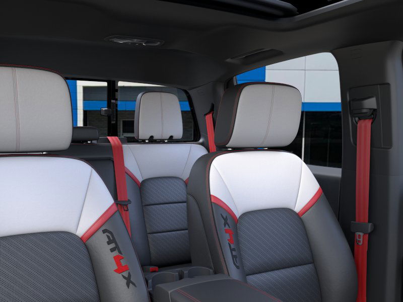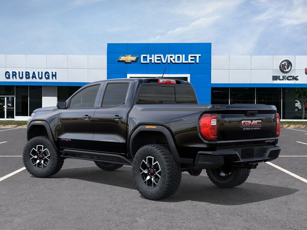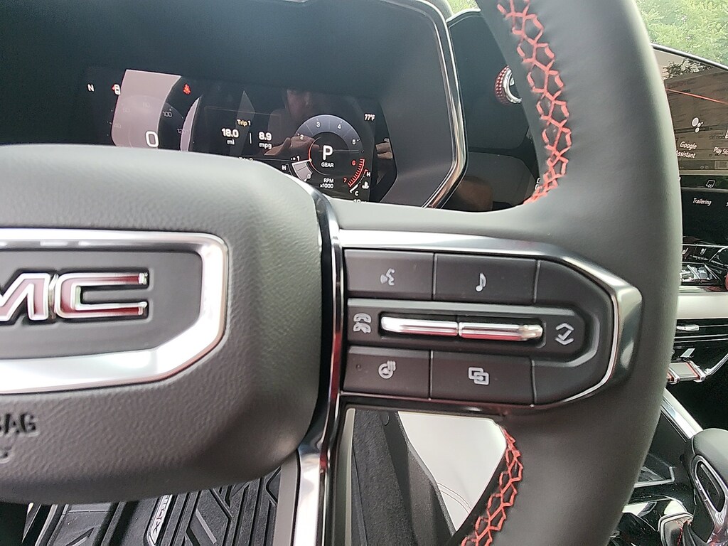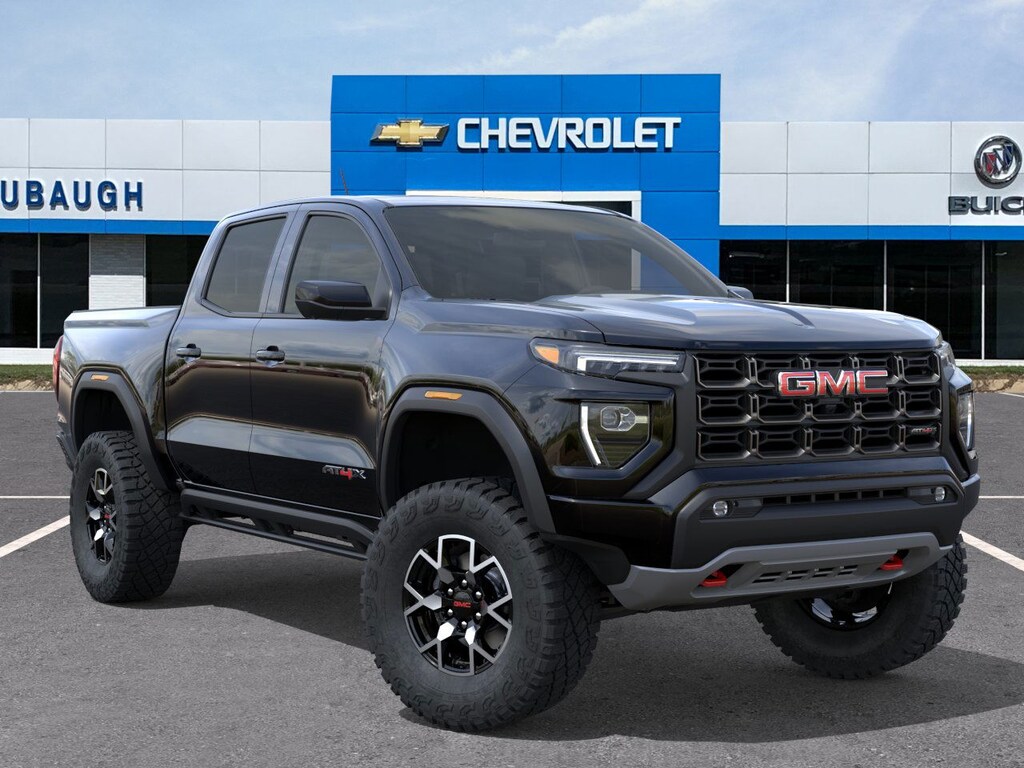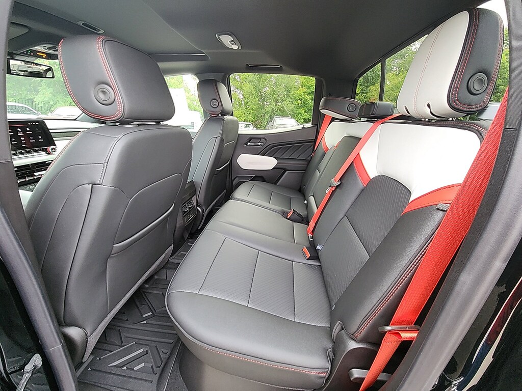Onyx Black 2025 GMC Canyon AT4 4WD 8-Speed Automatic 2.7L I4 Turbocharged DOHC 16V LEV3-SULEV30 310hp 4WD, 120-Volt Bed Mounted Power Outlet, 1st & 2nd Rows All-Weather Floor Liners (LPO), 2 1st Row USB Charge/Data Ports, 2 Rear USB Ports in Center Console (Charge-Only), 3.42 Rear Axle Ratio, 4-Way Manual Front Passenger Seat Adjuster, 4-Wheel Disc Brakes, 6 Speakers, 6-Speaker Audio System Feature, 6-Way Power Passenger Seat Adjuster, 8-Way Power Driver Seat Adjuster, ABS brakes, Adaptive Cruise Control, Air Conditioning, Alloy wheels, AM/FM radio, Apple CarPlay/Android Auto, AT4 Premium Package, AT4X Package, Auto High-beam Headlights, Auto-dimming Rear-View mirror, Automatic Emergency Braking, Automatic Stop/Start, Automatic temperature control, Black Finish Sport Upper Bodyside Moldings, Black Off-Road Rocker Protection (LPO), Blind Zone Steering Assist w/Trailering, Brake assist, Bumpers: body-color, Canyon Pro Safety, Canyon Safety Plus Package, Cloth/CoreTec Seat Trim, Compass, Delay-off headlights, Driver & Front Passenger Illuminated Visors, Driver & Front Passenger Ventilated Seats, Driver door bin, Driver Memory, Driver Mode Selector, Driver Seatback Map Pocket, Driver vanity mirror, Driver-Selectable Full-Locking Front Differential, Driver-Selectable Full-Locking Rear Differential, Dual front impact airbags, Dual front side impact airbags, Dual-Zone Auto Climate Control Air Conditioning, Electronic Stability Control, Emergency communication system: OnStar, EZ-Lift & Lower Tailgate, Following Distance Indicator, Forward Collision Alert, Front anti-roll bar, Front Bucket Seats, Front Center Armrest, Front dual zone A/C, Front fog lights, Front LED Fog Lamps, Front License Plate Kit, Front Passenger Seatback Map Pocket, Front Pedestrian & Bicyclist Braking, Front reading lights, Front Side Laminated Solar Glazing Glass, Front wheel independent suspension, HD Surround Vision, Heated door mirrors, Heated Driver & Front Passenger Seats, Heated front seats, Heated Steering Wheel, Illuminated entry, Inside Rear-View Auto-Dimming Mirror, Integrated Trailer Brake Controller, IntelliBeam Automatic High Beam On/Off, Interior Overhead Courtesy Light w/Dual Reading Lamp, Laminated Windshield Acoustic Glass, Lane Keep Assist w/Lane Departure Warning, Low tire pressure warning, Multicolor 6.3 Diagonal Head-Up Display, MultiStow Tailgate Storage Compartment, Navigation System, Occupant sensing airbag, Off-Road Suspension, Off-Road Suspension w/3 Lift, Outside temperature display, Overhead airbag, Overhead console, Panic alarm, Passenger door bin, Passenger vanity mirror, Perforated Leather-Appointed Seat Trim, Power door mirrors, Power Driver Lumbar Control Seat Adjuster, Power driver seat, Power Inner Sliding Glass Sunroof w/Manual Shade, Power Passenger Lumbar Control Seat Adjuster, Power steering, Power windows, Preferred Equipment Group 4SG, Premium 7-Speaker Bose Sound System, Radio data system, Radio: 11.3 Diagonal Premium GMC Infotainment Sys, Rear Center Fold-Down Armrest w/2 Cupholders, Rear Cross Traffic Braking, Rear of Console 120-Volt Power Outlet, Rear Pedestrian Alert, Rear reading lights, Rear step bumper, Rear window defroster, Red Seat Belt Color, Remote keyless entry, Remote Vehicle Starter System, Safety Alert Seat, Security system, SiriusXM w/360L, Speed control, Speed-sensing steering, Split folding rear seat, Spray-On Bedliner w/GMC Logo, Steering wheel mounted audio controls, Stop/Start System Disable Button Engine Control, Tachometer, Tailgate Keyed Cylinder Lock, Technology Plus Package, Telescoping steering wheel, Tilt & Telescopic Manual Steering Column, Tilt steering wheel, Traction control, Trailering App System, Trailering Package, Trip computer, Ultrasonic Rear Park Assist, Underbody Cameras, Variably intermittent wipers, Wheels: 17 x 8 Black High Gloss Machined Finish, Wheels: 18 x 8.5 Dark Gray Machined Finish Alum,