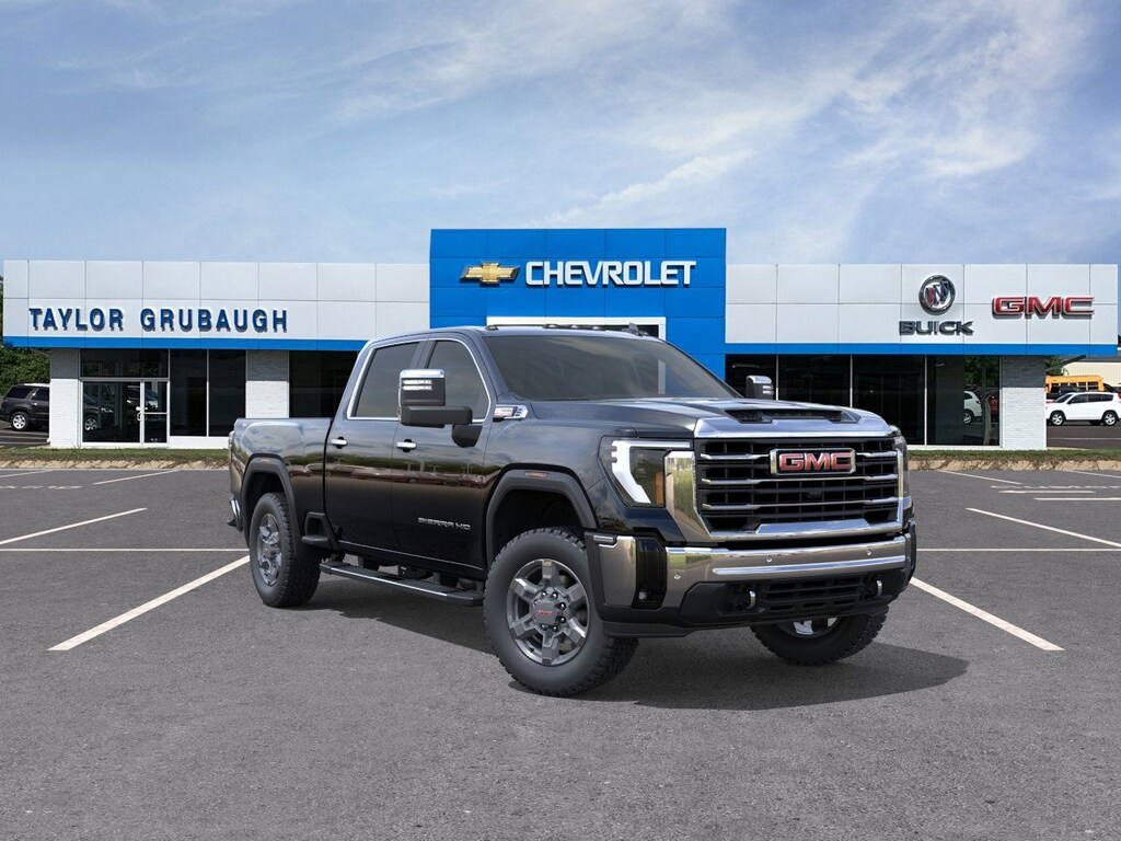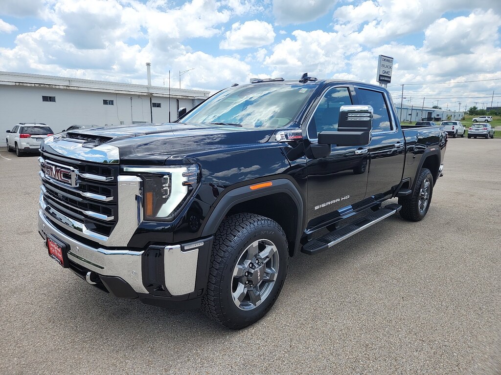 Onyx Black 2025 GMC Sierra 3500HD SLT 4WD 10-Speed Automatic Duramax 6.6L V8 Turbodiesel 10-Speed Automatic, 4WD, Dark Walnut/Slate Leather, 10-Way Power Driver Seat Adjuster w/Lumbar, 10-Way Power Passenger Seat Adjuster w/Lumbar, 120-Volt Bed Mounted Power Outlet, 120-Volt Instrument Panel Power Outlet, 18 Machined Aluminum Wheels, 2 Charge-Only Rear USB Ports, 2 Charge/Data USB Ports, 2 Charge/Data USB Ports Inside Center Console, 2-Speed Active Transfer Case, 220 Amp Alternator, 4-Wheel Disc Brakes, 6 Speakers, 6-Speaker Audio System Feature, 6 Rectangular Chromed Tubular Assist Steps, ABS brakes, Adaptive Cruise Control, Air Conditioning, Alloy wheels, AM/FM radio: SiriusXM with 360L, Auto High-beam Headlights, Auto-dimming door mirrors, Auto-dimming Rear-View mirror, Automatic Emergency Braking, Automatic temperature control, Bed View Camera w/2 Trailer Camera Provisions, Bose Premium 7-Speaker Sound System, Brake assist, Buckle to Drive, Bumpers: chrome, Chrome Surround Grille w/Chrome Insert Bars, Compass, Deep-Tinted Glass, Delay-off headlights, Driver door bin, Driver Memory, Driver vanity mirror, Dual front impact airbags, Dual front side impact airbags, Electric Rear-Window Defogger, Electronic Stability Control, Engine Block Heater, Exhaust Brake, Exterior Parking Camera Rear, Floor-Mounted Center Console, Following Distance Indicator, Forward Collision Alert, Front 40/20/40 Split-Bench Seats w/Lockable Storage, Front anti-roll bar, Front Bucket Seats, Front Center Armrest w/Storage, Front Chrome Recovery Hooks, Front dual zone A/C, Front fog lights, Front License Plate Kit, Front Pedestrian Braking, Front Rain-Sensing Wipers, Front reading lights, Front wheel independent suspension, Fully automatic headlights, GMC Premium 13.4 Diagonal Information Display, Gooseneck/5th Wheel Prep Package, HD Surround Vision, Heated 2nd Row Outboard Seats, Heated door mirrors, Heated Driver & Front Outboard Passenger Seats, Heated front seats, Heated steering wheel, Heavy-Duty 80 Amp-Hr Battery, Hill Descent Control, Hitch Guidance w/Hitch View, Hitch Package (LPO), Illuminated entry, IntelliBeam Automatic High Beam On/Off, Keyless Open & Start, Lane Departure Warning System, LED Cargo Area Lighting, LED Smoked Amber Roof Marker Lamps, Low tire pressure warning, Manual Tilt-Wheel/Telescoping Steering Column, Memory seat, Occupant sensing airbag, Off-Road Suspension, Outside temperature display, Overhead airbag, Overhead console, Panic alarm, Passenger door bin, Passenger vanity mirror, Perf Leather-Appointed Front Outboard Seat Trim, Pickup Bed, Power door mirrors, Power driver seat, Power Front Windows w/Passenger Express Up/Down, Power passenger seat, Power Sliding Rear Window w/Defogger, Power steering, Power windows, Preferred Equipment Group 4SA, Push Button Start, Radio: AM/FM w/Premium GMC Infotainment System, Rain sensing wipers, Rear Cross Traffic Alert, Rear reading lights, Rear seat center armrest, Rear step bumper, Rear Wheelhouse Liners, Rear window defroster, Remote keyless entry, Remote Vehicle Starter System, Safety Alert Seat, Security system, Sierra HD Pro Safety Plus Package, SiriusXM w/360L Trial Subscription, SLT Convenience Package, SLT Preferred Package, Speed control, Speed-sensing steering, Split folding rear seat, Spray-On Pickup Bedliner w/GMC Logo, Steering Wheel Audio Controls, Steering wheel mounted audio controls, Suspension Package, Tachometer, Telescoping steering wheel, Tilt steering wheel, Traction control, Trailer Camera Provisions, Trailer Side Blind Zone Alert, Trip computer, Turn signal indicator mirrors, Ultrasonic Front & Rear Park Assist, Unauthorized Entry Theft-Deterrent System, Universal Home Remote, Variably intermittent wipers, Ventilated Driver & Front Passenger Seats, Voltmeter, Wheels: 20 Bright Face w/Dark Painted Pockets, Winter Grille Cover, Wireless Charging, Wireless Phone Projection, X31 Off-Road Package,