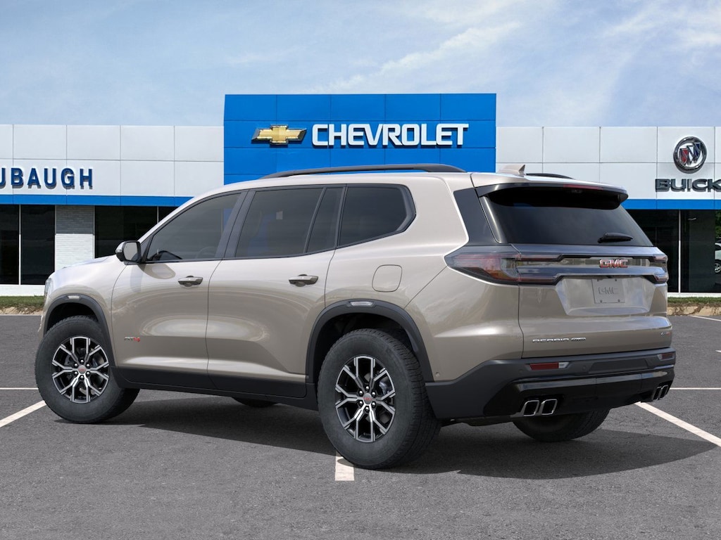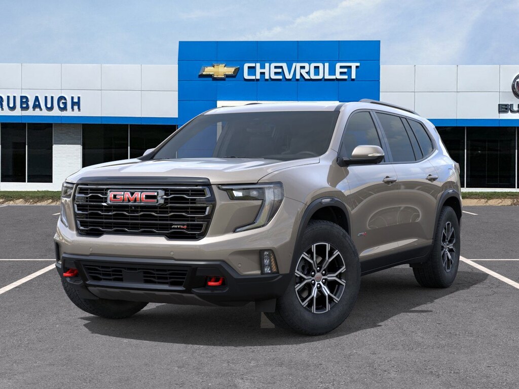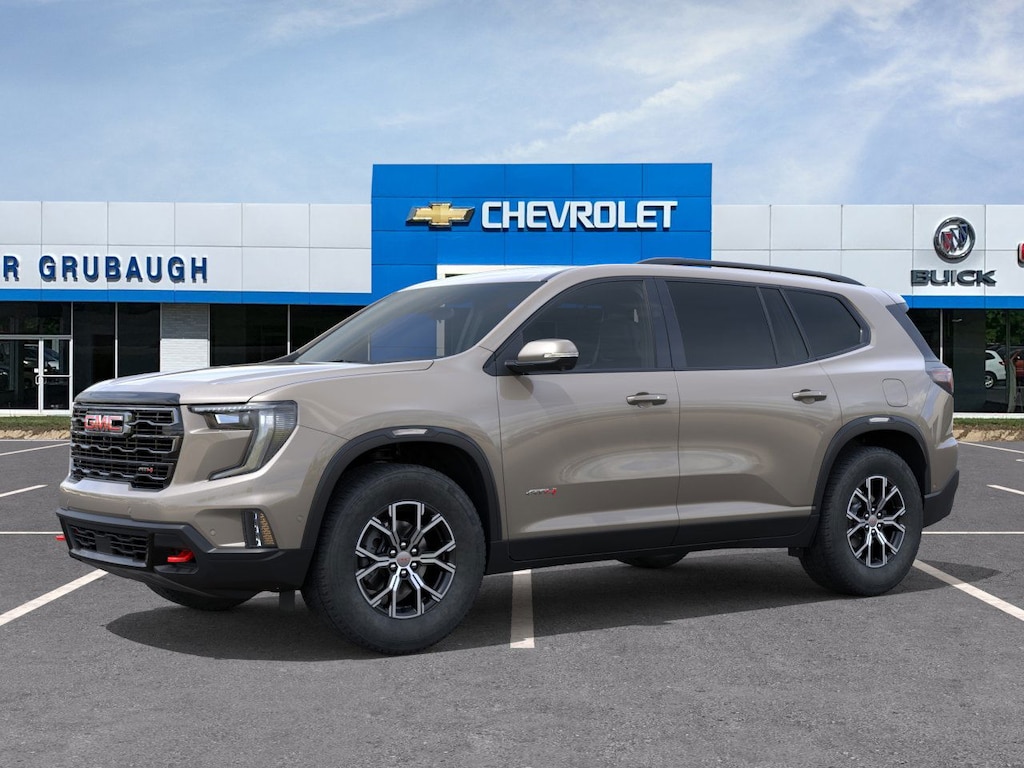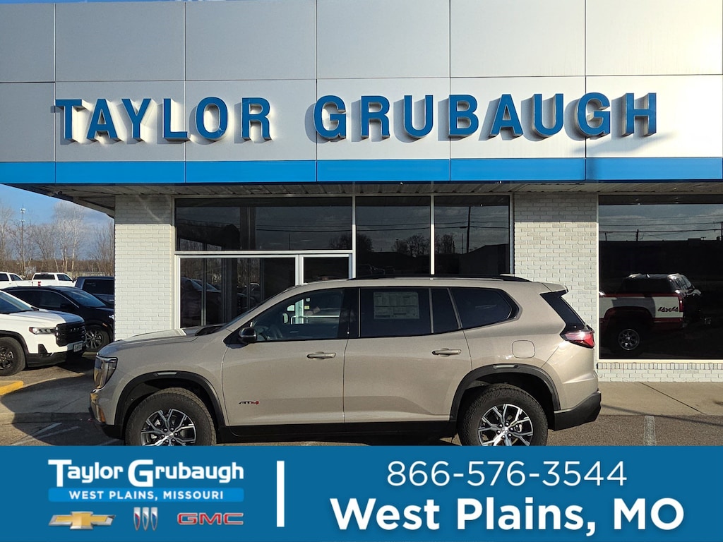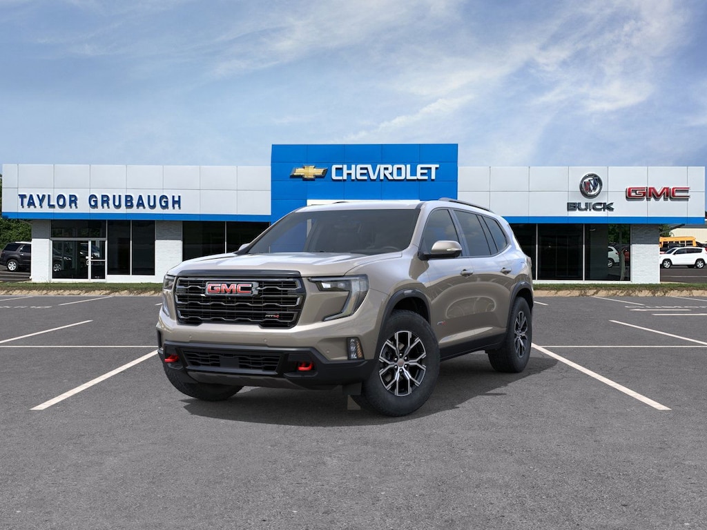Riverstone Metallic 2026 GMC Acadia AT4 AWD 8-Speed Automatic 2.5L DOHC AWD, Forest Storm W/Mahogany Accents, 12 Speakers, 3.49 Final Drive Axle Ratio, 3rd row seats: split-bench, 4-Wheel Disc Brakes, 6-Way Power Front Passenger Seat Adjuster, 7-Passenger Seating (2-2-3 Seating Configuration), 8-Way Power Driver Seat Adjuster, 8 Diagonal Head-Up Display, ABS brakes, Air Conditioning, Alloy wheels, AM/FM radio: SiriusXM with 360L, Apple CarPlay/Android Auto, Auto High-beam Headlights, Auto-dimming Rear-View mirror, Automatic temperature control, Bodyside moldings, Bose Premium 12-Speaker System w/Sub-Woofer, Brake assist, Bumpers: body-color, Cloth/CoreTec Seat Trim, Compass, Delay-off headlights, Driver 2-Way Power Lumbar Seat Adjuster, Driver door bin, Driver vanity mirror, Dual front impact airbags, Dual front side impact airbags, Electronic Stability Control, Emergency communication system: OnStar Services capable, Exterior Parking Camera Rear, Four wheel independent suspension, Front anti-roll bar, Front Bucket Seats, Front Center Armrest, Front dual zone A/C, Front fog lights, Front License Plate Bracket, Front Passenger Power Lumbar Seat Adjuster, Front reading lights, Fully automatic headlights, Garage door transmitter, Heated & Ventilated Driver & Front Passenger Seats, Heated door mirrors, Heated Driver & Front Passenger Seats, Heated front seats, Heated Rear Outboard Seating Positions, Heated steering wheel, Heated Wiper Park, Illuminated entry, Laminated Acoustic Glass, Leather steering wheel, Low tire pressure warning, Luxury Package, Navigation System, Occupant sensing airbag, Outside temperature display, Overhead airbag, Overhead console, Panic alarm, Passenger door bin, Passenger vanity mirror, Power door mirrors, Power driver seat, Power Liftgate, Power passenger seat, Power steering, Power windows, Radio data system, Radio: 15 Premium GMC Infotainment System, Rear air conditioning, Rear anti-roll bar, Rear reading lights, Rear side impact airbag, Rear window defroster, Rear window wiper, Remote keyless entry, Security system, SiriusXM w/360L, Speed control, Speed-sensing steering, Split folding rear seat, Spoiler, Sport steering wheel, Steering wheel mounted audio controls, Tachometer, Telescoping steering wheel, Tilt steering wheel, Traction control, Trip computer, Turn signal indicator mirrors, Variably intermittent wipers, Voltmeter, Wheels: 18 x 8 Dark Machined Aluminum, AWD, Forest Storm W/Mahogany Accents.