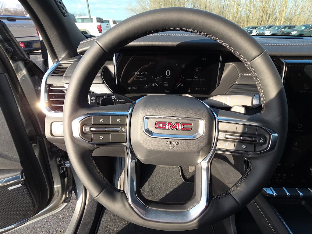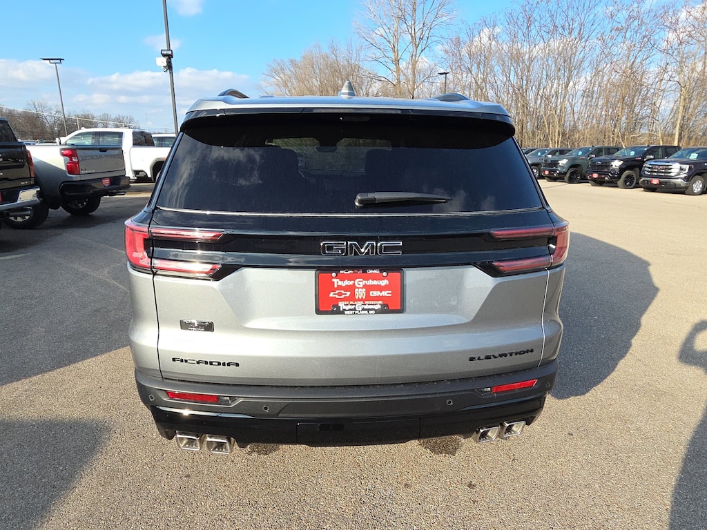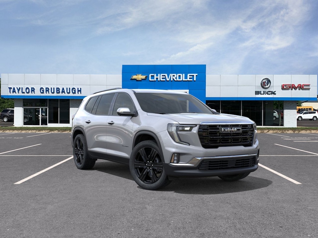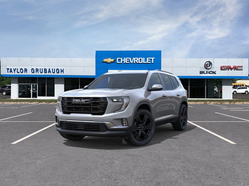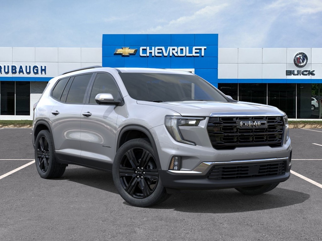 Sterling Metallic 2026 GMC Acadia Elevation FWD 8-Speed Automatic 2.5L DOHC FWD, After Dark Cloth, 12 Speakers, 18 x 7.5 Aluminum Wheels, 3-Channel Programmable Universal Home Remote, 3.49 Final Drive Axle Ratio, 3rd row seats: split-bench, 4-Way Manual Front Passenger Seat Adjuster, 4-Wheel Disc Brakes, 6-Way Power Front Passenger Seat Adjuster, 7-Passenger Seating (2-2-3 Seating Configuration), 8-Passenger Seating (2-3-3 Seating Configuration), 8-Way Power Driver Seat Adjuster, 8 Diagonal Head-Up Display, ABS brakes, Air Conditioning, Alloy wheels, AM/FM radio: SiriusXM with 360L, Apple CarPlay/Android Auto, Auto High-beam Headlights, Automatic temperature control, Black Edition, Bodyside moldings, Bose Premium 12-Speaker System with Sub-Woofer, Brake assist, Bumpers: body-color, Cloth Seat Trim, Compass, CoreTec Seat Trim, Delay-off headlights, Driver 2-Way Power Lumbar Seat Adjuster, Driver door bin, Driver vanity mirror, Dual front impact airbags, Dual front side impact airbags, Electronic Stability Control, Elevation Premium Package, Emergency communication system: OnStar Services capable, Exterior Parking Camera Rear, Four wheel independent suspension, Front and Rear Black GMC Emblems, Front anti-roll bar, Front Bucket Seats, Front Center Armrest, Front dual zone A/C, Front fog lights, Front Passenger Power Lumbar Seat Adjuster, Front reading lights, Fully automatic headlights, Gloss Black Roof Rails, Heated door mirrors, Heated Driver and Front Passenger Seats, Heated front seats, Heated Rear Outboard Seating Positions, Heated steering wheel, Heated Wiper Park, High Gloss Black Door Upper Moldings, Illuminated entry, Laminated Acoustic Glass, Leather steering wheel, Low tire pressure warning, Luxury Package, Navigation System, Occupant sensing airbag, Outside temperature display, Overhead airbag, Overhead console, Panic alarm, Passenger door bin, Passenger vanity mirror, Performance Suspension, Power door mirrors, Power driver seat, Power Liftgate, Power steering, Power windows, Radio data system, Radio: 15 Diagonal Premium GMC Infotainment System, Rear air conditioning, Rear anti-roll bar, Rear reading lights, Rear seat center armrest, Rear side impact airbag, Rear window defroster, Rear window wiper, Remote keyless entry, Security system, SiriusXM with 360L, Speed control, Speed-sensing steering, Split folding rear seat, Spoiler, Sport steering wheel, Steering wheel mounted audio controls, Tachometer, Telescoping steering wheel, Tilt steering wheel, Traction control, Trip computer, Turn signal indicator mirrors, Variably intermittent wipers, Voltmeter, Wheels: 22 x 8.5 Gloss Black Aluminum, FWD, After Dark Cloth.
