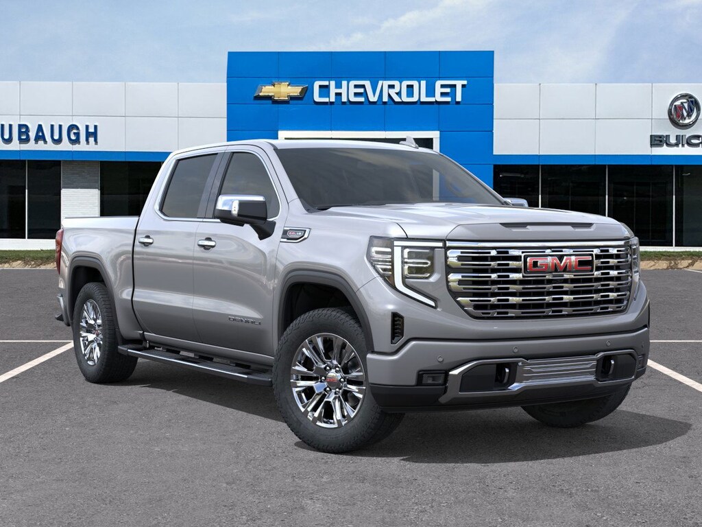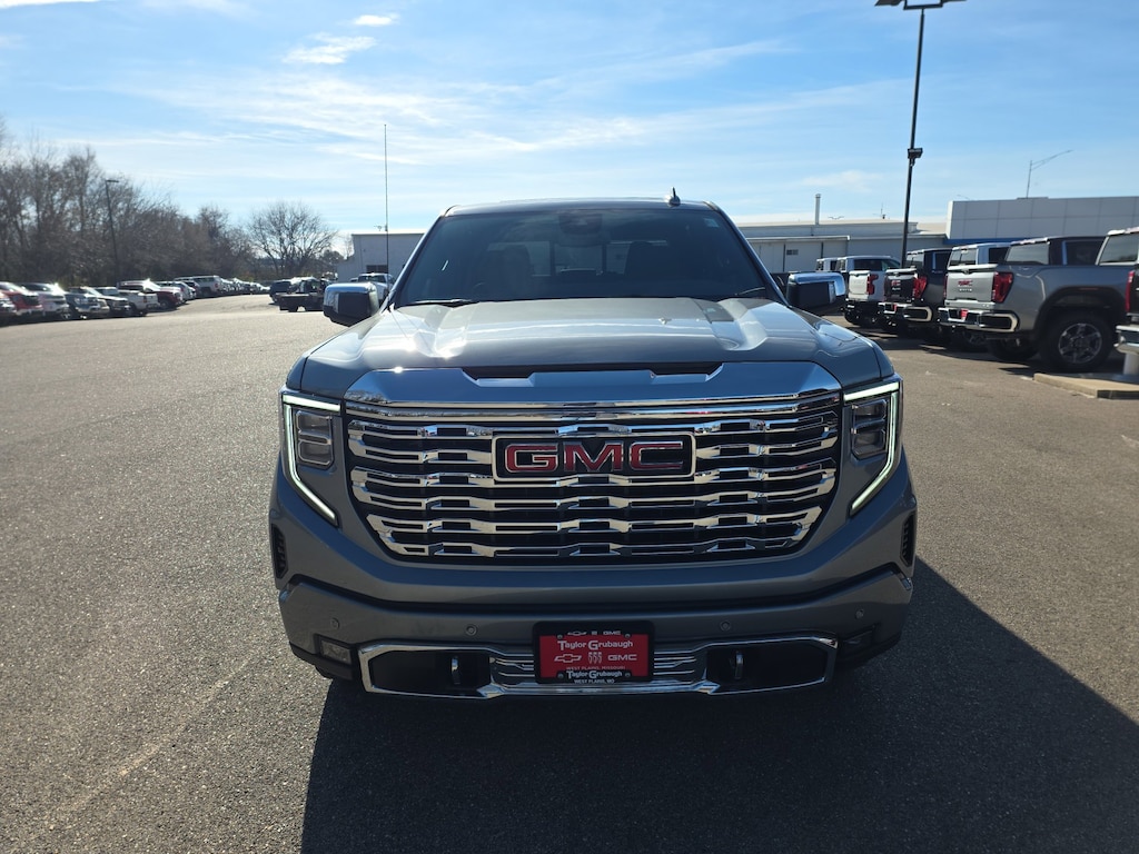 Sterling Metallic 2026 GMC Sierra 1500 Denali 4WD 10-Speed Automatic EcoTec3 6.2L V8 10-Speed Automatic, 4WD, Atmosphere/Brownstone Leather, 12-Way Power Driver Seat Adjuster w/Lumbar, 12-Way Power Passenger Seat Adjuster w/Lumbar, 120-Volt Bed Mounted Power Outlet, 120-Volt Interior Power Outlet, 170 Amp Alternator, 2 Charge/Data USB Ports Inside Center Console, 2 Type-C Charge-Only Rear USB Ports, 2 USB Ports, 3.23 Rear Axle Ratio, 4-Wheel Disc Brakes, 7 Speakers, ABS brakes, Adaptive suspension, Air Conditioning, Alloy wheels, AM/FM radio: SiriusXM with 360L, Apple CarPlay/Android Auto, Auto High-beam Headlights, Auto-dimming door mirrors, Auto-dimming Rear-View mirror, Auto-Locking Rear Differential, Automatic temperature control, Auxiliary External Transmission Oil Cooler, Bed View Camera, Brake assist, Buckle to Drive, Bumpers: body-color, Chrome Header w/Signature Denali Chrome Grille, Chrome Recovery Hooks, Chrome Wheel To Wheel Assist Steps, Color-Keyed Carpeting Floor Covering, Compass, Deep-Tinted Glass, Delay-off headlights, Denali Premium Suspension w/Adaptive Ride Control, Driver door bin, Driver Memory, Driver vanity mirror, Dual Active Exhaust, Dual front impact airbags, Dual front side impact airbags, Electric Rear-Window Defogger, Electronic Stability Control, Emergency communication system: OnStar, Enhanced Automatic Emergency Braking, Floor-Mounted Center Console, Following Distance Indicator, Forge Perforated Leather Seat Trim, Forward Collision Alert, Front anti-roll bar, Front Bucket Seats, Front Center Armrest, Front dual zone A/C, Front fog lights, Front License Plate Kit, Front Pedestrian Braking, Front Rain-Sensing Wipers, Front reading lights, Front wheel independent suspension, Fully automatic headlights, Garage door transmitter, Genuine wood console insert, Genuine wood dashboard insert, Genuine wood door panel insert, HD Surround Vision, Heated 2nd Row Outboard Seats, Heated door mirrors, Heated Driver & Front Outboard Passenger Seating, Heated front seats, Heated rear seats, Heated steering wheel, Heavy-Duty Air Filter, Hill Descent Control, Hitch Guidance, Hitch View, Illuminated entry, In-Vehicle Trailering System App, Integrated Trailer Brake Controller, IntelliBeam Automatic High Beam On/Off, Keyless Open & Start, Lane Keep Assist w/Lane Departure Warning, LED Cargo Area Lighting, Low tire pressure warning, Memory seat, Navigation System, Occupant sensing airbag, OnStar Services Capable, Outside temperature display, Overhead airbag, Overhead console, Panic alarm, Passenger door bin, Passenger vanity mirror, Perimeter Lighting, Power Door Locks, Power door mirrors, Power driver seat, Power Front Passenger Windows w/Express Up/Down, Power Front Windows w/Driver Express Up/Down, Power passenger seat, Power Rake & Telescoping Steering Column, Power Rear Windows w/Express Down, Power Sliding Rear Window w/Rear Defogger, Power steering, Power Sunroof, Power windows, Preferred Equipment Group 5SA, Premium Bose 7-Speaker Sound System, Push Button Start, Radio data system, Radio: Premium GMC Infotainment Audio System, Rain sensing wipers, Rear Cross Traffic Braking, Rear Pedestrian Detection, Rear reading lights, Rear seat center armrest, Rear step bumper, Rear Wheelhouse Liners, Rear window defroster, Remote keyless entry, Remote Vehicle Starter System, Safety Alert Seat, Security system, SiriusXM w/360L Trial Subscription, Speed control, Speed-sensing steering, Split folding rear seat, Spray-On Pickup Bedliner w/GMC Logo, Steering Wheel Audio Controls, Steering wheel mounted audio controls, Tachometer, Telescoping steering wheel, Theft Deterrent System (Unauthorized Entry), Tilt steering wheel, Traction control, Trailer Camera Provisions, Trailer Side Blind Zone Alert, Trailering Package, Trip computer, Ultrasonic Front & Rear Park Assist, Universal Home Remote, Variably intermittent wipers, Ventilated Driver & Front Passeng
