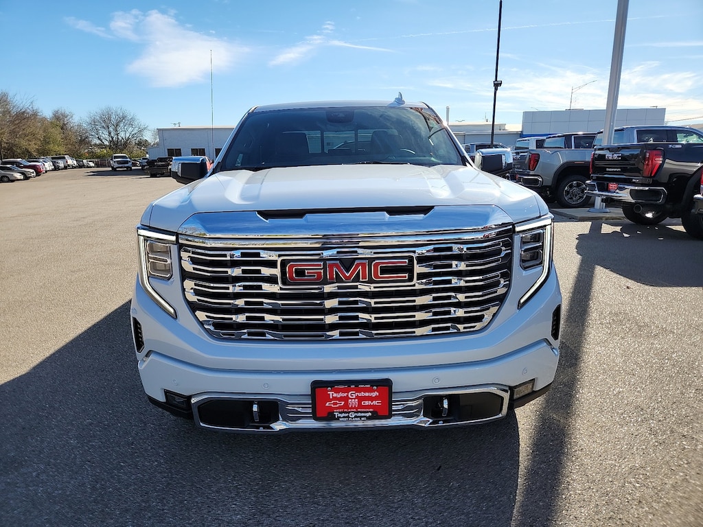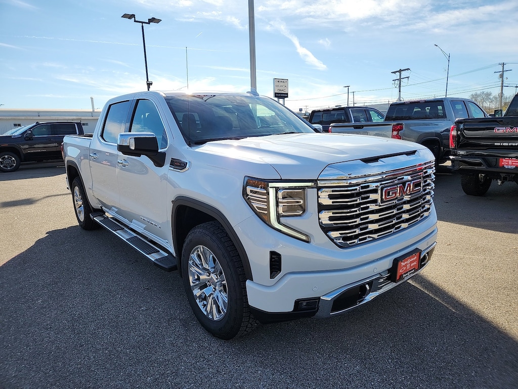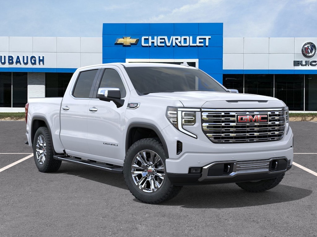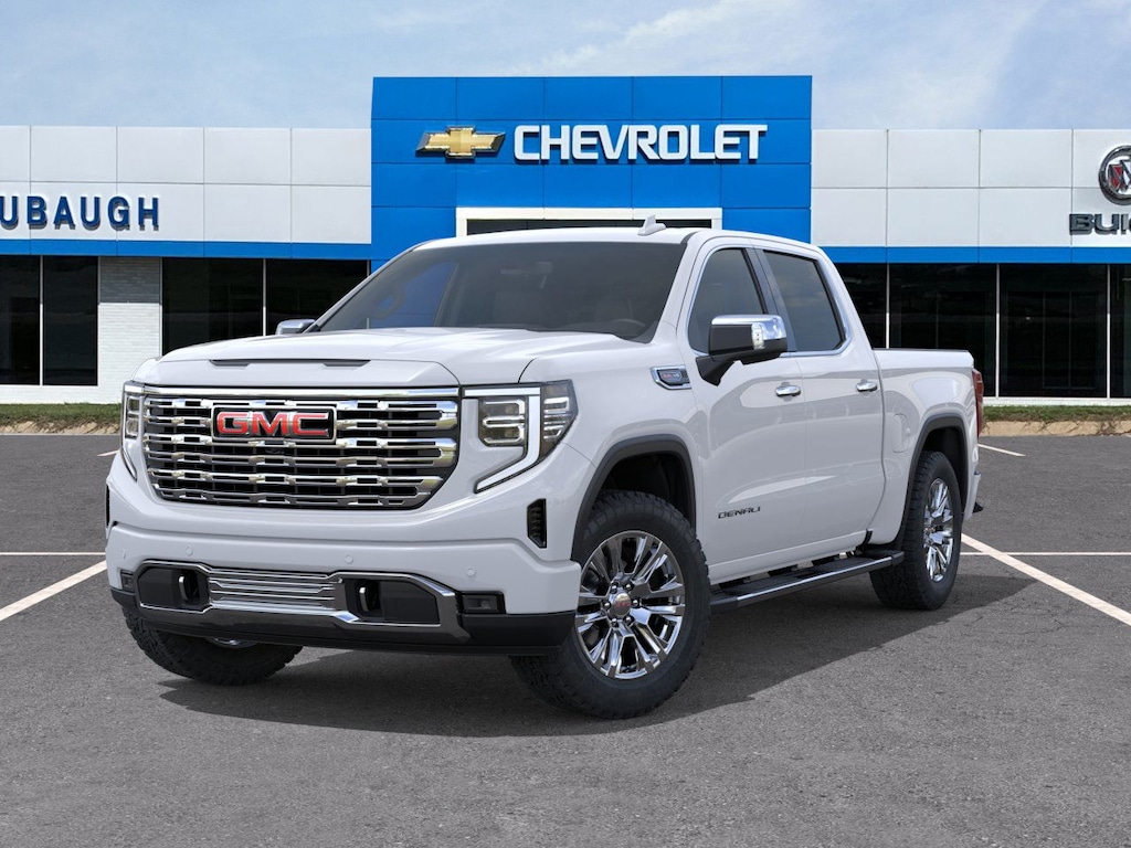 Glacier White Tricoat 2026 GMC Sierra 1500 Denali 4WD 10-Speed Automatic EcoTec3 6.2L V8 10-Speed Automatic, 4WD, Atmosphere/Brownstone Leather, 12-Way Power Driver Seat Adjuster w/Lumbar, 12-Way Power Passenger Seat Adjuster w/Lumbar, 120-Volt Bed Mounted Power Outlet, 120-Volt Interior Power Outlet, 170 Amp Alternator, 2 Charge/Data USB Ports Inside Center Console, 2 Type-C Charge-Only Rear USB Ports, 2 USB Ports, 3.23 Rear Axle Ratio, 4-Wheel Disc Brakes, 7 Speakers, ABS brakes, Adaptive suspension, Air Conditioning, Alloy wheels, AM/FM radio: SiriusXM with 360L, Apple CarPlay/Android Auto, Auto High-beam Headlights, Auto-dimming door mirrors, Auto-dimming Rear-View mirror, Auto-Locking Rear Differential, Automatic temperature control, Auxiliary External Transmission Oil Cooler, Bed View Camera, Brake assist, Buckle to Drive, Bumpers: body-color, Chrome Header w/Signature Denali Chrome Grille, Chrome Recovery Hooks, Chrome Wheel To Wheel Assist Steps, Color-Keyed Carpeting Floor Covering, Compass, Deep-Tinted Glass, Delay-off headlights, Denali Premium Suspension w/Adaptive Ride Control, Driver door bin, Driver Memory, Driver vanity mirror, Dual Active Exhaust, Dual front impact airbags, Dual front side impact airbags, Electric Rear-Window Defogger, Electronic Stability Control, Emergency communication system: OnStar, Enhanced Automatic Emergency Braking, Floor-Mounted Center Console, Following Distance Indicator, Forge Perforated Leather Seat Trim, Forward Collision Alert, Front anti-roll bar, Front Bucket Seats, Front Center Armrest, Front dual zone A/C, Front fog lights, Front Pedestrian Braking, Front Rain-Sensing Wipers, Front reading lights, Front wheel independent suspension, Fully automatic headlights, Garage door transmitter, Genuine wood console insert, Genuine wood dashboard insert, Genuine wood door panel insert, HD Surround Vision, Heated 2nd Row Outboard Seats, Heated door mirrors, Heated Driver & Front Outboard Passenger Seating, Heated front seats, Heated rear seats, Heated steering wheel, Heavy-Duty Air Filter, Hill Descent Control, Hitch Guidance, Hitch View, Illuminated entry, In-Vehicle Trailering System App, Integrated Trailer Brake Controller, IntelliBeam Automatic High Beam On/Off, Keyless Open & Start, Lane Keep Assist w/Lane Departure Warning, LED Cargo Area Lighting, Low tire pressure warning, Memory seat, Multicolor 15 Diagonal Head-Up Display, Navigation System, Occupant sensing airbag, OnStar Services Capable, Outside temperature display, Overhead airbag, Overhead console, Panic alarm, Passenger door bin, Passenger vanity mirror, Perimeter Lighting, Power Door Locks, Power door mirrors, Power driver seat, Power Front Passenger Windows w/Express Up/Down, Power Front Windows w/Driver Express Up/Down, Power passenger seat, Power Rake & Telescoping Steering Column, Power Rear Windows w/Express Down, Power Sliding Rear Window w/Rear Defogger, Power steering, Power windows, Premium Bose 7-Speaker Sound System, Push Button Start, Radio data system, Radio: Premium GMC Infotainment Audio System, Rain sensing wipers, Rear Camera Mirror, Rear Cross Traffic Braking, Rear Pedestrian Detection, Rear reading lights, Rear seat center armrest, Rear step bumper, Rear Wheelhouse Liners, Rear window defroster, Remote keyless entry, Remote Vehicle Starter System, Safety Alert Seat, Security system, SiriusXM w/360L Trial Subscription, Speed control, Speed-sensing steering, Split folding rear seat, Spray-On Pickup Bedliner w/GMC Logo, Steering Wheel Audio Controls, Steering wheel mounted audio controls, Super Cruise, Tachometer, Technology Package, Telescoping steering wheel, Theft Deterrent System (Unauthorized Entry), Tilt steering wheel, Traction control, Trailer Camera Provisions, Trailer Side Blind Zone Alert, Trailering Package, Trip computer, Ultrasonic Front & Rear Park Assist, Universal Home Remote, Variably intermittent wipers, Ventilated