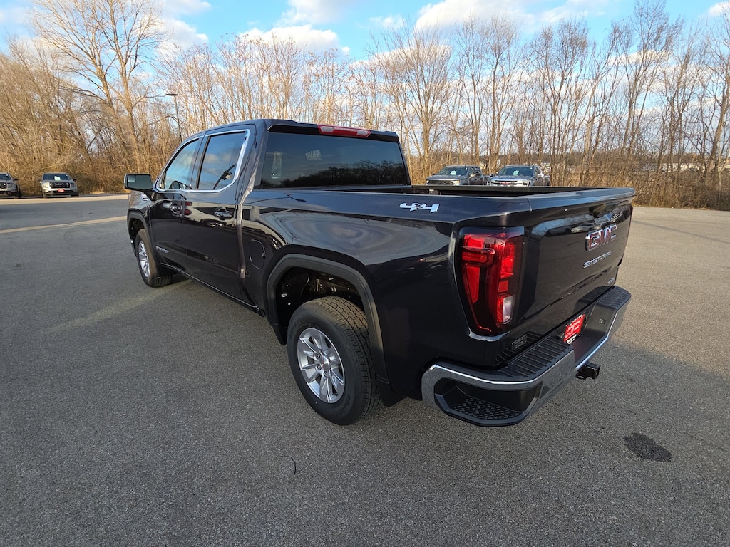 Titanium Rush Metallic 2026 GMC Sierra 1500 SLE 4WD 10-Speed Automatic 3.0L I6 10-Speed Automatic, 4WD, Jet Black Cloth, 10-Way Power Driver Seat Adjuster w/Lumbar, 120-Volt Bed Mounted Power Outlet, 120-Volt Interior Power Outlet, 2 Charge/Data USB Ports, 2 Type-C Charge-Only Rear USB Ports, 220 Amp Alternator, 4-Way Manual Passenger Seat Adjuster, 4-Wheel Disc Brakes, 6 Speakers, 6-Speaker Audio System Feature, ABS brakes, Air Conditioning, Alloy wheels, AM/FM radio: SiriusXM with 360L, Apple CarPlay/Android Auto, Auto High-beam Headlights, Auto-Locking Rear Differential, Automatic Emergency Braking, Automatic temperature control, Brake assist, Buckle to Drive, Bumpers: chrome, Chrome Header w/Medium Silver Grille Insert Bars, Cloth Seat Trim, Color-Keyed Carpeting Floor Covering, Compass, Deep-Tinted Glass, Delay-off headlights, Driver door bin, Driver vanity mirror, Dual front impact airbags, Dual front side impact airbags, Dual-Zone Automatic Climate Control, Electric Rear-Window Defogger, Electronic Stability Control, Emergency communication system: OnStar, Following Distance Indicator, Forward Collision Alert, Front 40/20/40 Split-Bench Seat, Front anti-roll bar, Front Center Armrest w/Storage, Front dual zone A/C, Front Frame-Mounted Black Recovery Hooks, Front Pedestrian Braking, Front reading lights, Front Rubberized-Vinyl Floor Mats, Front wheel independent suspension, Fully automatic headlights, HD Rear Vision Camera, Heated door mirrors, Heated Driver & Front Outboard Passenger Seating, Heated front seats, Heated steering wheel, Hitch Guidance, Illuminated entry, Integrated Trailer Brake Controller, IntelliBeam Automatic High Beam On/Off, Keyless Open & Start, Lane Keep Assist w/Lane Departure Warning, LED Cargo Area Lighting, Low tire pressure warning, Manual Tilt-Wheel & Telescoping Steering Column, Navigation System, Occupant sensing airbag, OnStar Services Capable, Outside temperature display, Overhead airbag, Overhead console, Panic alarm, Passenger door bin, Passenger vanity mirror, Power Door Locks, Power door mirrors, Power driver seat, Power Front Windows w/Driver Express Up/Down, Power Front Windows w/Passenger Express Down, Power Rear Windows w/Express Down, Power steering, Power windows, Push Button Start, Radio data system, Radio: Premium GMC Infotainment Audio System, Rear reading lights, Rear Rubberized-Vinyl Floor Mats, Rear step bumper, Rear window defroster, Remote keyless entry, Remote Start Package, Remote Vehicle Starter System, Security system, SiriusXM w/360L Trial Subscription, SLE Convenience Package, SLE Value Package, Speed control, Speed-sensing steering, Split folding rear seat, Standard Suspension Package, Steering Wheel Audio Controls, Steering wheel mounted audio controls, Tachometer, Telescoping steering wheel, Theft Deterrent System (Unauthorized Entry), Tilt steering wheel, Traction control, Trailering Package, Trip computer, Variably intermittent wipers, Voltmeter, Wheels: 17 x 8 Bright Silver Painted Aluminum, Wi-Fi Hotspot Capable, Wireless Apple CarPlay/Wireless Android Auto, 10-Speed Automatic, 4WD, Jet Black Cloth.
