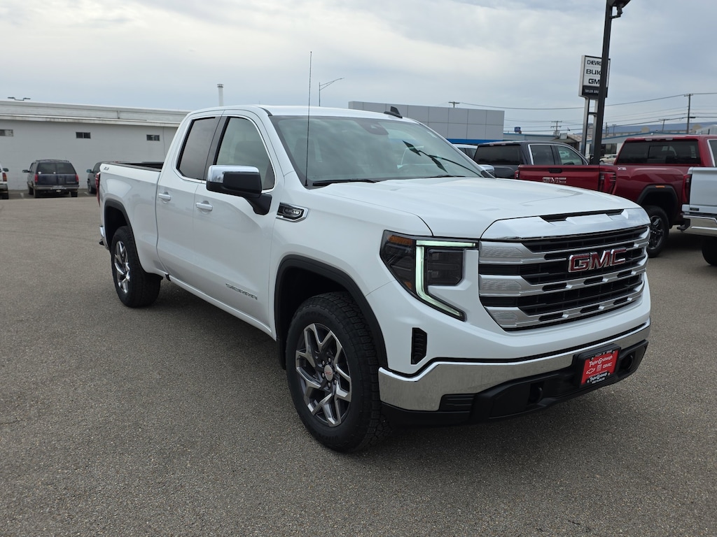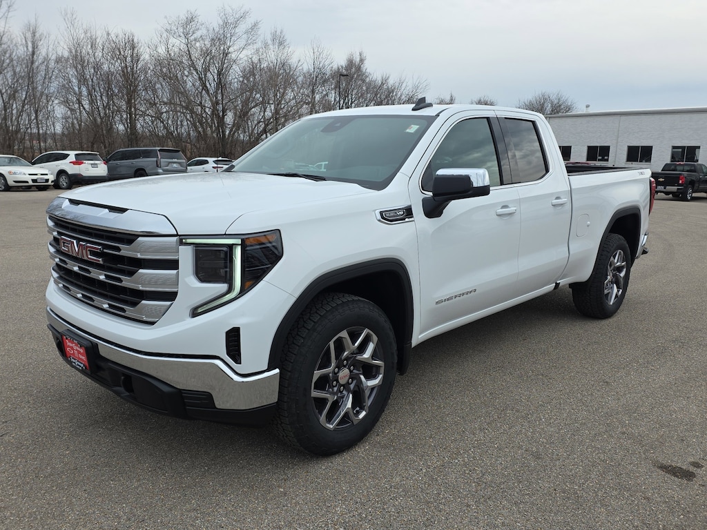 Summit White 2026 GMC Sierra 1500 SLE 4WD 10-Speed Automatic EcoTec3 5.3L V8 10-Speed Automatic, 4WD, Black Cloth, 10-Way Power Driver Seat Adjuster with Lumbar, 120-Volt Bed Mounted Power Outlet, 120-Volt Interior Power Outlet, 170 Amp Alternator, 2 Charge/Data USB Ports, 2 Type-C Charge-Only Rear USB Ports, 20 Polished Aluminum Wheels, 220 Amp Alternator, 3.23 Rear Axle Ratio, 4-Way Manual Passenger Seat Adjuster, 4-Wheel Disc Brakes, 6 Speakers, 6-Speaker Audio System Feature, ABS brakes, Air Conditioning, Alloy wheels, AM/FM radio: SiriusXM with 360L, Apple CarPlay/Android Auto, Auto High-beam Headlights, Auto-Locking Rear Differential, Automatic Emergency Braking, Automatic temperature control, Auxiliary External Transmission Oil Cooler, Brake assist, Buckle to Drive, Bumpers: chrome, Chrome Header with Medium Silver Grille Insert Bars, Cloth Seat Trim, Color-Keyed Carpeting Floor Covering, Compass, Deep-Tinted Glass, Delay-off headlights, Driver door bin, Driver vanity mirror, Dual Exhaust System, Dual front impact airbags, Dual front side impact airbags, Dual-Zone Automatic Climate Control, Electric Rear-Window Defogger, Electronic Stability Control, Emergency communication system: OnStar, External Engine Oil Cooling, Following Distance Indicator, Forward Collision Alert, Front 40/20/40 Split-Bench Seat, Front anti-roll bar, Front Center Armrest w/Storage, Front dual zone A/C, Front Frame-Mounted Black Recovery Hooks, Front License Plate Kit, Front Pedestrian Braking, Front reading lights, Front Rubberized-Vinyl Floor Mats, Front wheel independent suspension, Fully automatic headlights, HD Rear Vision Camera, Heated door mirrors, Heated Driver and Front Outboard Passenger Seating, Heated front seats, Heated steering wheel, Heavy-Duty Air Filter, High Capacity Suspension Package, Hill Descent Control, Hitch Guidance, Illuminated entry, Integrated Trailer Brake Controller, IntelliBeam Automatic High Beam on/Off, Keyless Open and Start, Lane Keep Assist with Lane Departure Warning, LED Cargo Area Lighting, Low tire pressure warning, Manual Tilt-Wheel and Telescoping Steering Column, Navigation System, Occupant sensing airbag, Off-Road Suspension, OnStar Services Capable, Outside temperature display, Overhead airbag, Overhead console, Panic alarm, Passenger door bin, Passenger vanity mirror, Power Door Locks, Power door mirrors, Power driver seat, Power Front Windows with Driver Express Up/Down, Power Front Windows with Passenger Express Down, Power Rear Windows with Express Down, Power steering, Power windows, Preferred Equipment Group 3SA, Push Button Start, Radio data system, Radio: Premium GMC Infotainment Audio System, Rear reading lights, Rear Rubberized-Vinyl Floor Mats, Rear step bumper, Rear Wheelhouse Liners, Rear window defroster, Remote keyless entry, Remote Start Package, Remote Vehicle Starter System, Security system, SiriusXM with 360L Trial Subscription, SLE Convenience Package, SLE Value Package, Speed control, Speed-sensing steering, Split folding rear seat, Spray-on Pickup Bedliner with GMC Logo, Standard Suspension Package, Steering Wheel Audio Controls, Steering wheel mounted audio controls, Tachometer, Telescoping steering wheel, Theft Deterrent System (unauthorized Entry), Tilt steering wheel, Traction control, Trailering Package, Trip computer, Variably intermittent wipers, Voltmeter, Wheels: 17 x 8 Bright Silver Painted Aluminum, Wheels: 18 x 8.5 6-Spoke Machined Aluminum, Wi-Fi Hotspot Capable, Wireless Apple CarPlay/Wireless Android Auto, X31 Hard Badge, X31 Off-Road Package, 10-Speed Automatic, 4WD, Black Cloth.