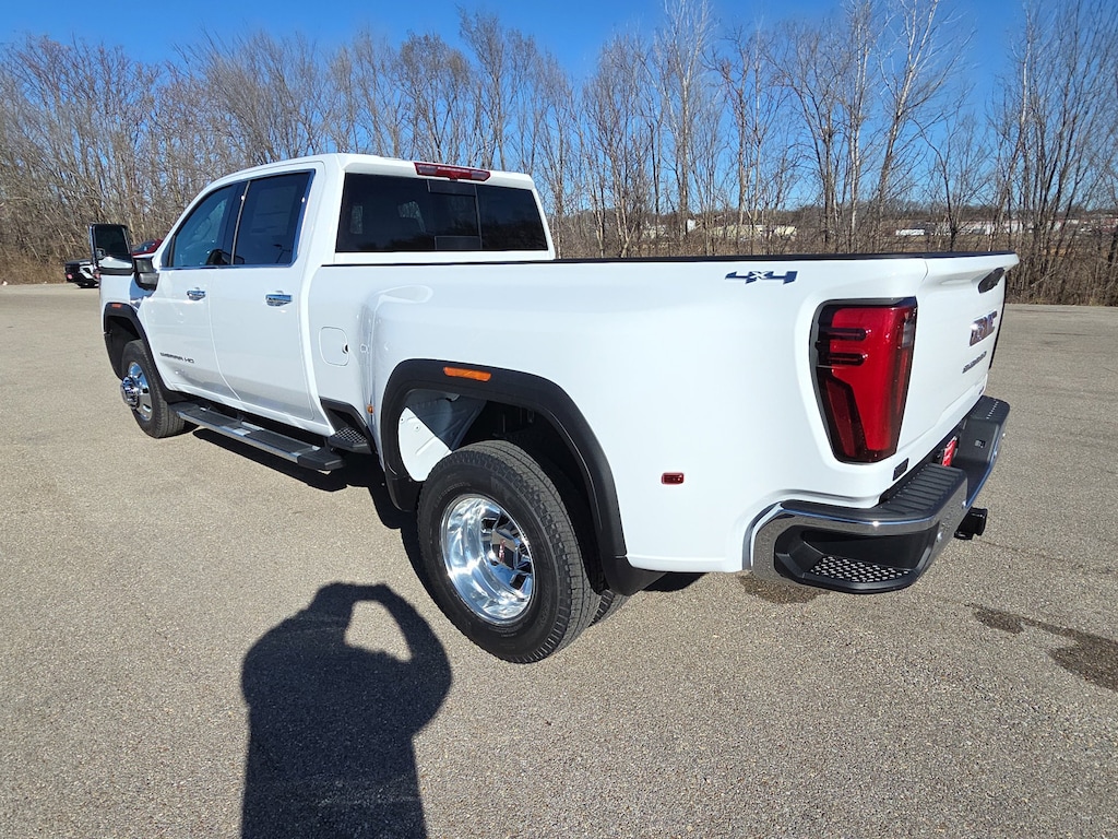 Summit White 2026 GMC Sierra 3500HD SLT 4WD 10-Speed Automatic Duramax 6.6L V8 Turbodiesel 10-Speed Automatic, 4WD, Jet Black Leather, 10-Way Power Driver Seat Adjuster with Lumbar, 10-Way Power Passenger Seat Adjuster with Lumbar, 120-Volt Bed Mounted Power Outlet, 120-Volt Instrument Panel Power Outlet, 2 Charge-Only Rear USB Ports, 2 Charge/Data USB Ports, 2 Charge/Data USB Ports Inside Center Console, 2-Speed Active Transfer Case, 4-Wheel Disc Brakes, 6 Speakers, 6-Speaker Audio System Feature, ABS brakes, Adaptive Cruise Control, Air Conditioning, AM/FM radio: SiriusXM with 360L, Auto High-beam Headlights, Auto-dimming door mirrors, Auto-dimming Rear-View mirror, Automatic Emergency Braking, Automatic temperature control, Bed View Camera with Two Trailer Camera Provisions, Bose Premium 7-Speaker Sound System, Brake assist, Buckle to Drive, Bumpers: chrome, Chrome Surround Grille with Chrome Insert Bars, Compass, Deep-Tinted Glass, Delay-off headlights, Driver door bin, Driver Memory, Driver vanity mirror, Dual front impact airbags, Dual front side impact airbags, Electric Rear-Window Defogger, Electronic Stability Control, Emergency communication system: OnStar Services capable, Exterior Parking Camera Rear, Floor-Mounted Center Console, Following Distance Indicator, Forward Collision Alert, Front 40/20/40 Split-Bench Seats with Lockable Storage, Front anti-roll bar, Front Center Armrest w/Storage, Front dual zone A/C, Front fog lights, Front Pedestrian Braking, Front Rain-Sensing Wipers, Front reading lights, Front wheel independent suspension, Fully automatic headlights, GMC Premium 13.4 Diagonal Information Display, Gooseneck/5th Wheel Prep Package, HD Surround Vision, Heated 2nd Row Outboard Seats, Heated door mirrors, Heated Driver and Front Outboard Passenger Seats, Heated front seats, Heated steering wheel, Heavy-Duty 80 Amp-Hour Battery, Hitch Guidance with Hitch View, Hitch Package, Illuminated entry, IntelliBeam Automatic High Beam on/Off, Keyless Open and Start, Lane Departure Warning System, LED Cargo Area Lighting, Low tire pressure warning, Manual Tilt-Wheel/Telescoping Steering Column, Memory seat, Occupant sensing airbag, Outside temperature display, Overhead airbag, Overhead console, Panic alarm, Passenger door bin, Passenger vanity mirror, Perforated Leather-Appointed Front Outboard Seat Trim, Pickup Bed, Power door mirrors, Power driver seat, Power Front Windows with Passenger Express Up/Down, Power passenger seat, Power steering, Power Sunroof, Power windows, Premium audio system: Premium GMC Infotainment System, Push Button Start, Radio: AM/FM Stereo with Premium GMC Infotainment System, Rain sensing wipers, Rear Cross Traffic Alert, Rear reading lights, Rear seat center armrest, Rear step bumper, Rear Wheelhouse Liners, Rear window defroster, Remote keyless entry, Remote Vehicle Starter System, Safety Alert Seat, Security system, Sierra HD Pro Safety Plus Package, SiriusXM with 360L Trial Subscription, SLT Convenience Package, SLT Preferred Package, Speed control, Speed-sensing steering, Split folding rear seat, Spray-on Pickup Bedliner with GMC Logo, Steering Wheel Audio Controls, Steering wheel mounted audio controls, Suspension Package, Tachometer, Telescoping steering wheel, Tilt steering wheel, Traction control, Trailer Camera Provisions, Trailer Side Blind Zone Alert, Trip computer, Turn signal indicator mirrors, Ultrasonic Front and Rear Park Assist, Unauthorized Entry Theft-Deterrent System, Universal Home Remote, Variably intermittent wipers, Ventilated Driver and Front Passenger Seats, Voltmeter, Wireless Charging, Wireless Phone Projection, 10-Speed Automatic, 4WD, Jet Black Leather.