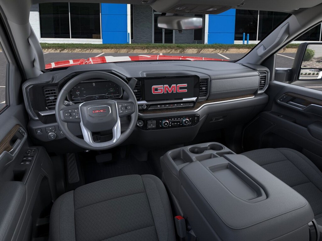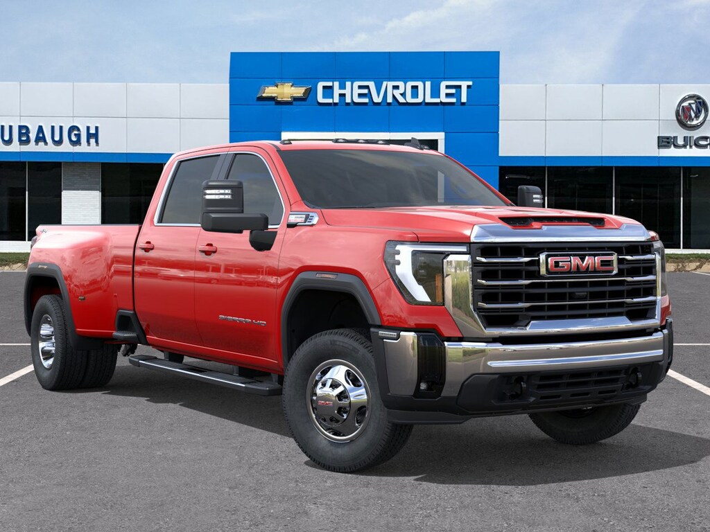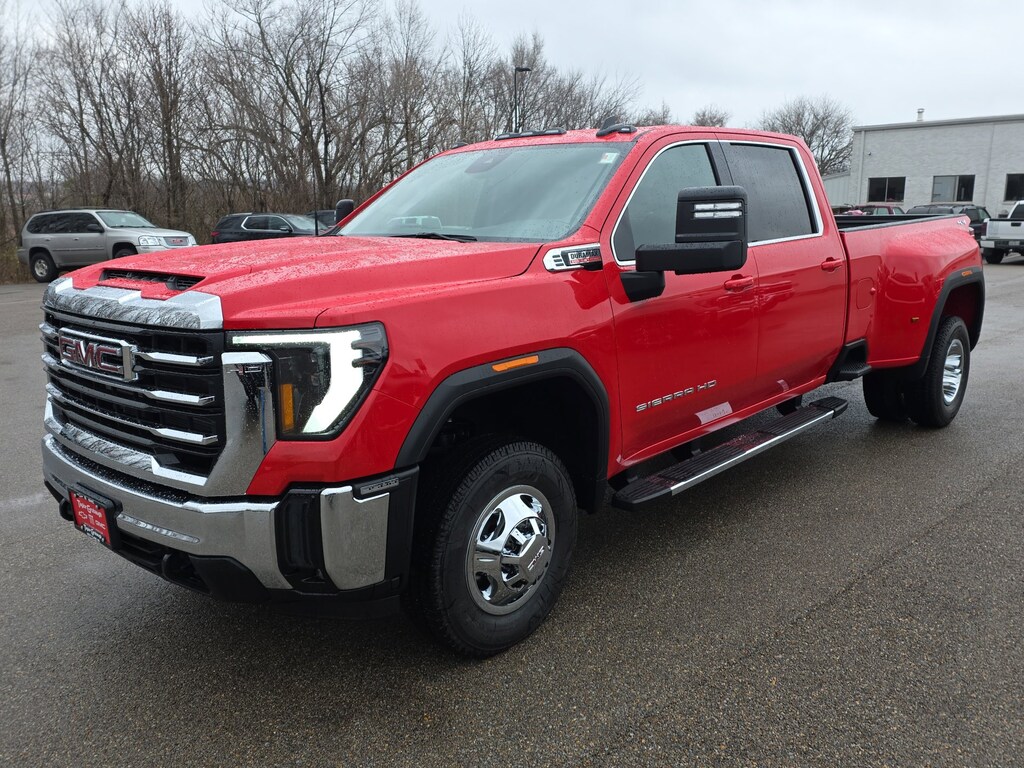 Cardinal Red 2026 GMC Sierra 3500HD SLE 4WD 10-Speed Automatic Duramax 6.6L V8 Turbodiesel 10-Speed Automatic, 4WD, Jet Black Cloth, 10-Way Power Driver Seat Adjuster with Lumbar, 120-Volt Bed Mounted Power Outlet, 120-Volt Instrument Panel Power Outlet, 2 Charge-Only Rear USB Ports, 2 Charge/Data USB Ports, 2-Speed Electronic Shift Transfer Case, 220 Amp Alternator, 4-Way Manual Driver Seat Adjuster, 4-Way Manual Passenger Seat Adjuster, 4-Wheel Disc Brakes, 6 Speakers, 6-Speaker Audio System Feature, ABS brakes, Air Conditioning, AM/FM radio: SiriusXM with 360L, Auto High-beam Headlights, Automatic Emergency Braking, Brake assist, Buckle to Drive, Bumpers: chrome, Chrome Surround Grille with Chrome Insert Bars, Cloth Seat Trim, Compass, Deep-Tinted Glass, Delay-off headlights, Driver door bin, Driver vanity mirror, Dual front impact airbags, Dual front side impact airbags, Dual-Zone Automatic Climate Control, Electric Rear-Window Defogger, Electronic Stability Control, Emergency communication system: OnStar Services capable, Engine Block Heater, Exhaust Brake, Exterior Parking Camera Rear, Following Distance Indicator, Forward Collision Alert, Front 40/20/40 Split-Bench Seats with Lockable Storage, Front anti-roll bar, Front Center Armrest w/Storage, Front License Plate Kit, Front Pedestrian Braking, Front reading lights, Front wheel independent suspension, Fully automatic headlights, GMC Premium 13.4 Diagonal Information Display, Gooseneck/5th Wheel Prep Package, Heated door mirrors, Heated Driver and Front Outboard Passenger Seats, Heated Steering Wheel, Heavy-Duty 80 Amp-Hour Battery, Hitch Package, Illuminated entry, IntelliBeam Automatic High Beam on/Off, Keyless Open and Start, Lane Departure Warning System, LED Fog Lamps, Low tire pressure warning, Manual Tilt-Wheel/Telescoping Steering Column, Occupant sensing airbag, Outside temperature display, Overhead airbag, Overhead console, Panic alarm, Passenger door bin, Passenger vanity mirror, Pickup Bed, Power door mirrors, Power steering, Power windows, Preferred Equipment Group 3SA, Premium audio system: Premium GMC Infotainment System, Push Button Start, Radio: AM/FM Stereo with Premium GMC Infotainment System, Rear reading lights, Rear step bumper, Remote keyless entry, Remote Start Package, Remote Vehicle Starter System, SiriusXM with 360L Trial Subscription, SLE Convenience Package, SLE Heated Package, Speed control, Split folding rear seat, Spray-on Pickup Bedliner with GMC Logo, Steering Wheel Audio Controls, Steering wheel mounted audio controls, Suspension Package, Tachometer, Tilt steering wheel, Traction control, Trip computer, Turn signal indicator mirrors, Unauthorized Entry Theft-Deterrent System, Variably intermittent wipers, Voltmeter, Winter Grille Cover, Wireless Phone Projection, 10-Speed Automatic, 4WD, Jet Black Cloth.