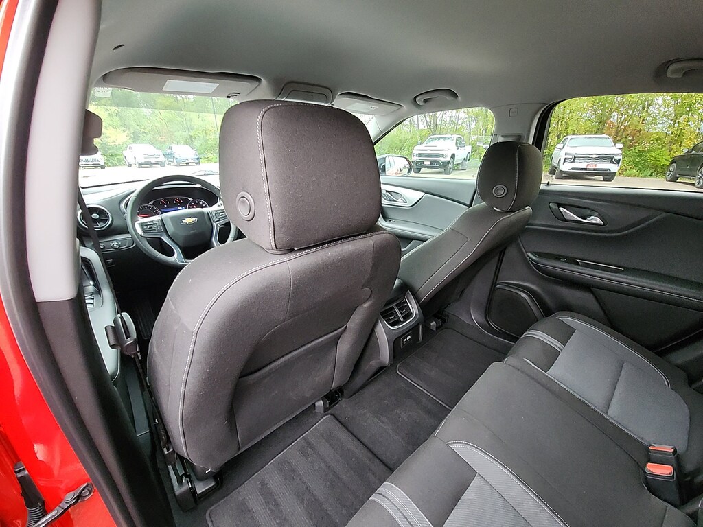 Remote Start, Bluetooth, Rear Camera, My Link Radio, Apple CarPlay, Android Auto, Blazer LT, 4D Sport Utility, 2.0L Turbocharged, 9-Speed Automatic with Overdrive, FWD, Red Hot, Jet Black Cloth, 170 Amp Alternator, 3.47 Final Drive Axle Ratio, 4-Way Manual Front Passenger Seat Adjuster, 4-Wheel Disc Brakes, 6 Speakers, 6-Speaker Audio System Feature, 8-Way Power Driver Seat Adjuster, ABS brakes, Air Conditioning, Alloy wheels, AM/FM radio: SiriusXM with 360L, Apple CarPlay/Android Auto, Auto High-beam Headlights, Automatic temperature control, Black Roof-Mounted Side Rails, Brake assist, Bumpers: body-color, Child-Seat-Sensing Airbag, Compass, Delay-off headlights, Driver door bin, Driver vanity mirror, Dual front impact airbags, Dual front side impact airbags, Electronic Stability Control, Emergency communication system: OnStar and Chevrolet connected services capable, Four wheel independent suspension, Front & Rear Black Bowties, Front anti-roll bar, Front Bucket Seats, Front Center Armrest, Front dual zone A/C, Front reading lights, Fully automatic headlights, Heated door mirrors, Illuminated entry, Knee airbag, Leather Shift Knob, Low tire pressure warning, Midnight/Sport Edition, Occupant sensing airbag, Outside temperature display, Overhead airbag, Overhead console, Panic alarm, Passenger door bin, Passenger vanity mirror, Power door mirrors, Power Driver Lumbar Control, Power driver seat, Power steering, Power windows, Preferred Equipment Group 2LT, Premium audio system: Chevrolet Infotainment 3 Plus, Premium Cloth Seat Trim, Radio data system, Radio: Chevrolet Infotainment 3 Plus System, Rear anti-roll bar, Rear reading lights, Rear seat center armrest, Rear window defroster, Rear window wiper, Remote keyless entry, Ride & Handling Suspension, Security system, SiriusXM w/360L, Speed control, Speed-sensing steering, Split folding rear seat, Spoiler, Steering wheel mounted audio controls, Tachometer, Telescoping steering wheel, Tilt steering wheel, Traction control, Trip computer, Variably intermittent wipers, Voltmeter, Wheels: 18 Grazen Metallic Aluminum, Wheels: 18 High Gloss Black Painted Aluminum, Blazer LT, 4D Sport Utility, 2.0L Turbocharged, 9-Speed Automatic with Overdrive, FWD, Red Hot, Jet Black Cloth. Red Hot 2023 Chevrolet Blazer LT 2.0L Turbocharged 9-Speed Automatic with Overdrive FWD 4D Sport Utility