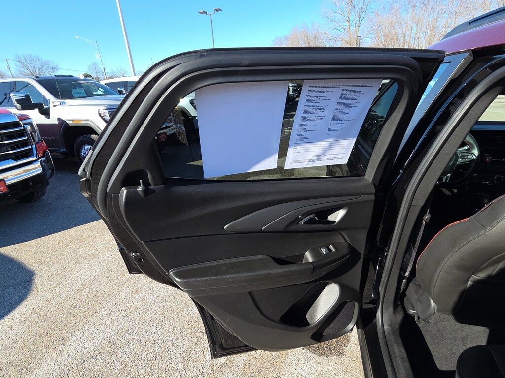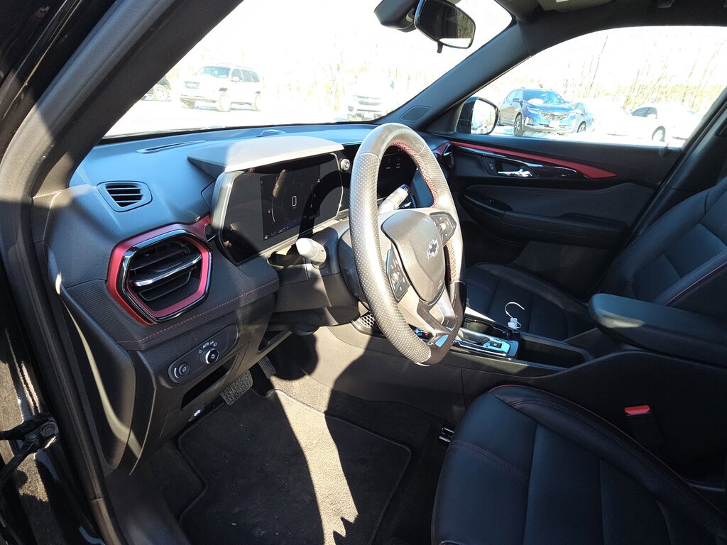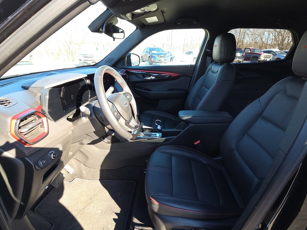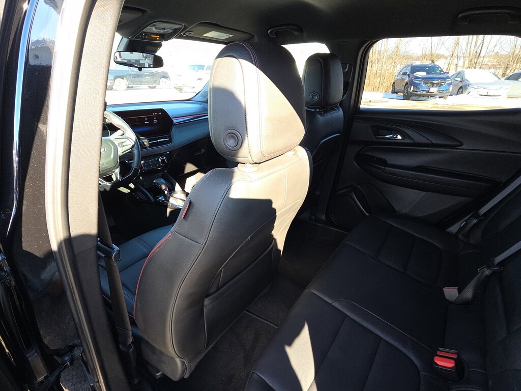 Leather, Remote Start, Bluetooth, Rear Camera, My Link Radio, One Owner, Heated Seats, Apple CarPlay, Android Auto, TrailBlazer RS, 4D Sport Utility, 1.3L Ecotec Turbo DOHC SIDI w/VVT, 9-Speed Automatic, AWD, Mosaic Black Metallic, Jet Black With Red Accents Premium Synthetic, 1 Type-A & 1 Type-C USB Ports, 11 Diagonal HD Color Touchscreen, 2-Way Power Driver Lumbar Seat Adjuster, 3.17 Final Drive Axle Ratio, 4-Way Manual Front Passenger Seat Adjuster, 4-Wheel Disc Brakes, 6 Speakers, 6-Speaker Audio System Feature w/Amplifier, 8-Way Power Driver Seat Adjuster, ABS brakes, Air Conditioning, Alloy wheels, AM/FM radio: SiriusXM, Auto High-beam Headlights, Brake assist, Bumpers: body-color, Chevrolet Connected Access Capable, Compass, Crimson Metallic Two-Tone Roof, Delay-off headlights, Driver Confidence Package, Driver door bin, Driver vanity mirror, Dual front impact airbags, Dual front side impact airbags, Electronic Stability Control, Emergency communication system: OnStar and Chevrolet connected services capable, Evotex Seat Trim, Exterior Parking Camera Rear, Flat-Folding Front Passenger Seatback, Front anti-roll bar, Front Bucket Seats, Front Center Armrest, Front License Plate Bracket, Front reading lights, Front wheel independent suspension, Fully automatic headlights, Heated door mirrors, Heated Driver & Front Passenger Seats, Heated front seats, Heated steering wheel, Illuminated entry, Knee airbag, Lane Change Alert w/Side Blind Zone Alert, Low tire pressure warning, Occupant sensing airbag, Overhead airbag, Overhead console, Panic alarm, Passenger door bin, Passenger vanity mirror, Power door mirrors, Power driver seat, Power steering, Power windows, Preferred Equipment Group 1RS, Radio data system, Radio: AM/FM Stereo Audio System, Rear Cross Traffic Alert, Rear Park Assist, Rear seat center armrest, Rear side impact airbag, Rear window defroster, Rear window wiper, Remote keyless entry, Ride & Handling Suspension, Security system, SiriusXM, Speed control, Split folding rear seat, Spoiler, Steering wheel mounted audio controls, Tachometer, Telescoping steering wheel, Tilt steering wheel, Traction control, Trip computer, Variably intermittent wipers, Wheels: 19 High Gloss Black Machined Aluminum, Wireless Apple CarPlay/Android Auto, TrailBlazer RS, 4D Sport Utility, 1.3L Ecotec Turbo DOHC SIDI w/VVT, 9-Speed Automatic, AWD, Mosaic Black Metallic, Jet Black With Red Accents Premium Synthetic. Mosaic Black Metallic 2024 Chevrolet TrailBlazer RS 1.3L Ecotec Turbo DOHC SIDI w/VVT 9-Speed Automatic AWD 4D Sport Utility