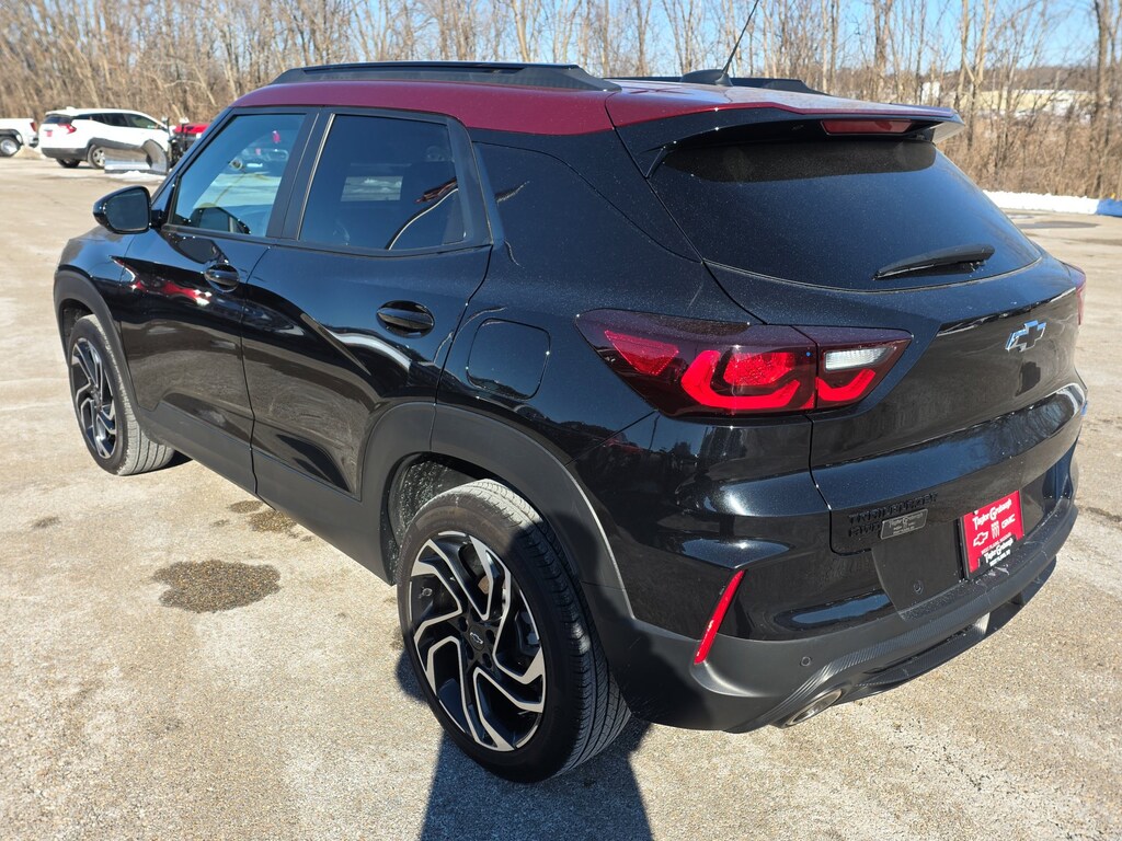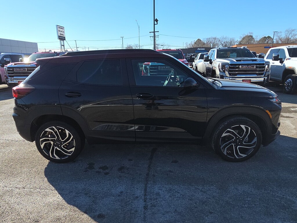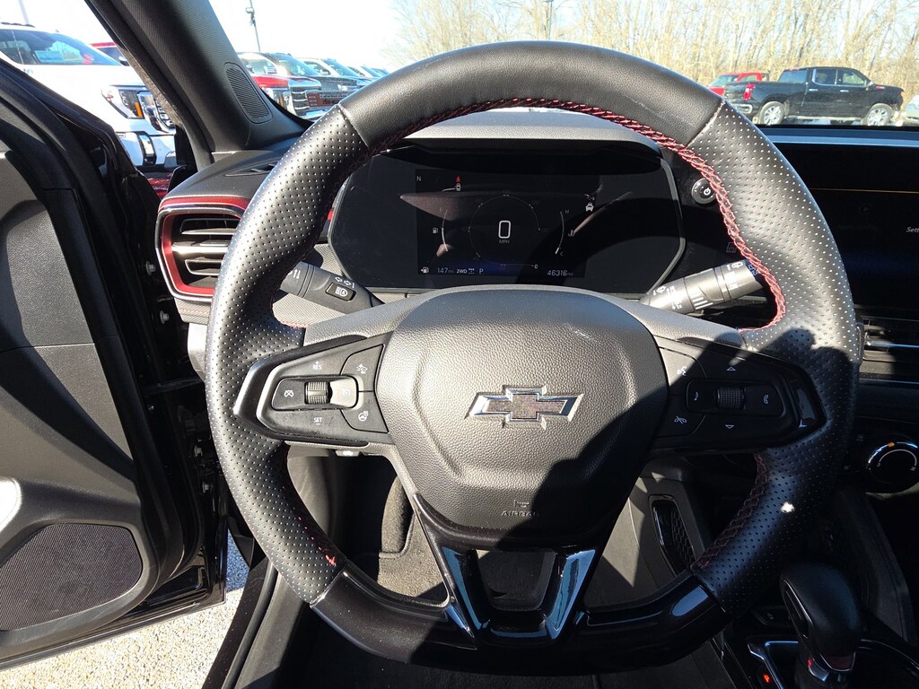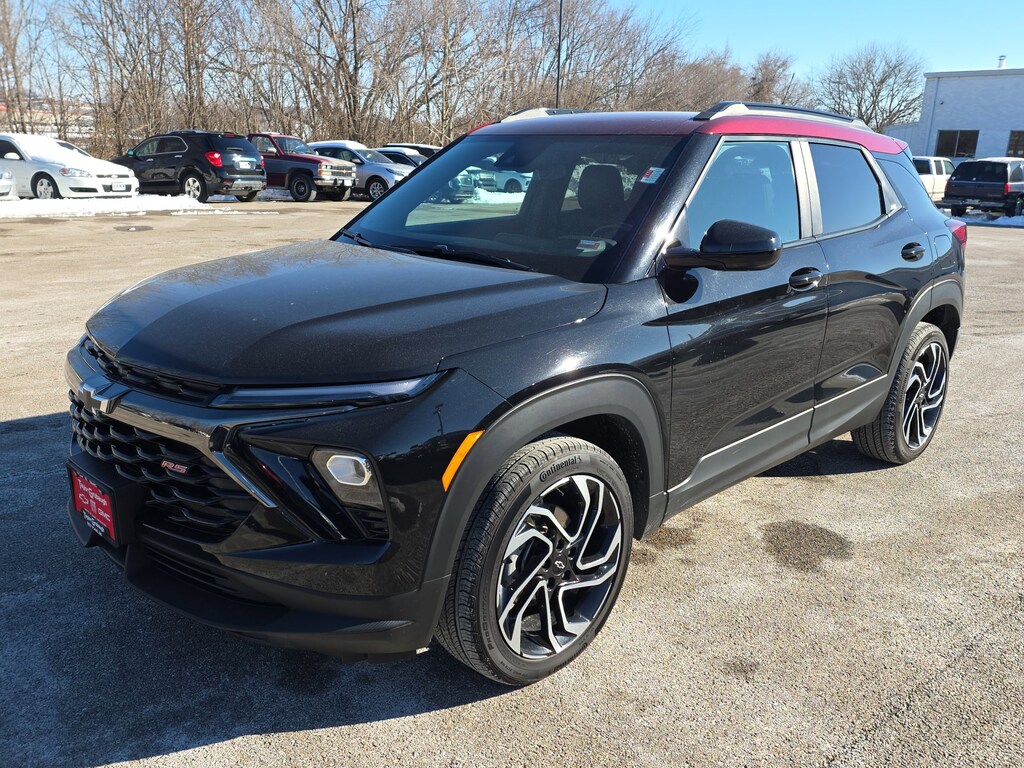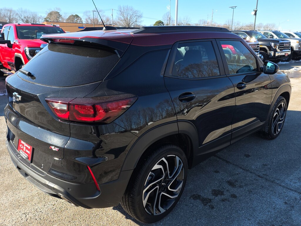 Leather, Remote Start, Bluetooth, Rear Camera, My Link Radio, One Owner, Heated Seats, Apple CarPlay, Android Auto, TrailBlazer RS, 4D Sport Utility, 1.3L Ecotec Turbo DOHC SIDI w/VVT, 9-Speed Automatic, AWD, Mosaic Black Metallic, Jet Black With Red Accents Premium Synthetic, 1 Type-A & 1 Type-C USB Ports, 11 Diagonal HD Color Touchscreen, 2-Way Power Driver Lumbar Seat Adjuster, 3.17 Final Drive Axle Ratio, 4-Way Manual Front Passenger Seat Adjuster, 4-Wheel Disc Brakes, 6 Speakers, 6-Speaker Audio System Feature w/Amplifier, 8-Way Power Driver Seat Adjuster, ABS brakes, Air Conditioning, Alloy wheels, AM/FM radio: SiriusXM, Auto High-beam Headlights, Brake assist, Bumpers: body-color, Chevrolet Connected Access Capable, Compass, Crimson Metallic Two-Tone Roof, Delay-off headlights, Driver Confidence Package, Driver door bin, Driver vanity mirror, Dual front impact airbags, Dual front side impact airbags, Electronic Stability Control, Emergency communication system: OnStar and Chevrolet connected services capable, Evotex Seat Trim, Exterior Parking Camera Rear, Flat-Folding Front Passenger Seatback, Front anti-roll bar, Front Bucket Seats, Front Center Armrest, Front License Plate Bracket, Front reading lights, Front wheel independent suspension, Fully automatic headlights, Heated door mirrors, Heated Driver & Front Passenger Seats, Heated front seats, Heated steering wheel, Illuminated entry, Knee airbag, Lane Change Alert w/Side Blind Zone Alert, Low tire pressure warning, Occupant sensing airbag, Overhead airbag, Overhead console, Panic alarm, Passenger door bin, Passenger vanity mirror, Power door mirrors, Power driver seat, Power steering, Power windows, Preferred Equipment Group 1RS, Radio data system, Radio: AM/FM Stereo Audio System, Rear Cross Traffic Alert, Rear Park Assist, Rear seat center armrest, Rear side impact airbag, Rear window defroster, Rear window wiper, Remote keyless entry, Ride & Handling Suspension, Security system, SiriusXM, Speed control, Split folding rear seat, Spoiler, Steering wheel mounted audio controls, Tachometer, Telescoping steering wheel, Tilt steering wheel, Traction control, Trip computer, Variably intermittent wipers, Wheels: 19 High Gloss Black Machined Aluminum, Wireless Apple CarPlay/Android Auto, TrailBlazer RS, 4D Sport Utility, 1.3L Ecotec Turbo DOHC SIDI w/VVT, 9-Speed Automatic, AWD, Mosaic Black Metallic, Jet Black With Red Accents Premium Synthetic. Mosaic Black Metallic 2024 Chevrolet TrailBlazer RS 1.3L Ecotec Turbo DOHC SIDI w/VVT 9-Speed Automatic AWD 4D Sport Utility
