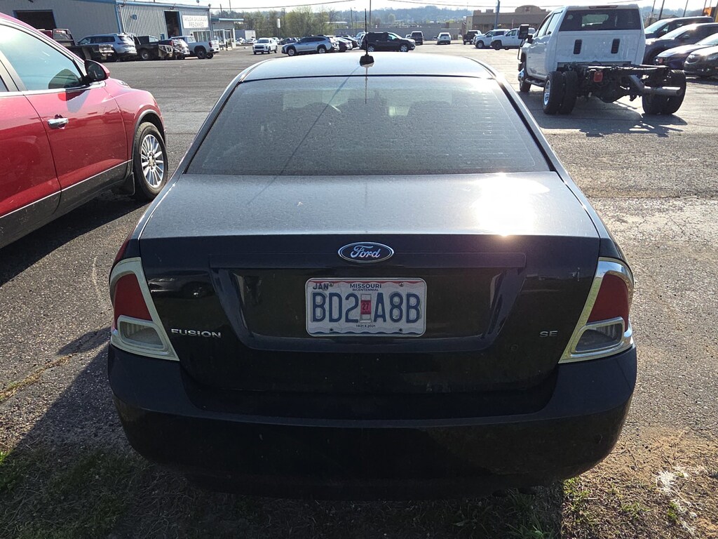 5-Speed Automatic, 16 Machined Aluminum Wheels, 4-Wheel Disc Brakes, 6 Speakers, Air Conditioning, Alloy wheels, AM/FM radio, Bodyside moldings, Bumpers: body-color, CD player, Cloth Front Bucket Seats, Driver door bin, Driver vanity mirror, Dual front impact airbags, Dual front side impact airbags, Four wheel independent suspension, Front anti-roll bar, Front Bucket Seats, Front Center Armrest w/Storage, Front fog lights, Front reading lights, Illuminated entry, Leather Shift Knob, Occupant sensing airbag, Overhead airbag, Panic alarm, Passenger door bin, Passenger vanity mirror, Power door mirrors, Power driver seat, Power steering, Power windows, Radio data system, Rear anti-roll bar, Rear seat center armrest, Rear window defroster, Remote keyless entry, Security system, Speed control, Speed-sensing steering, Speed-Sensitive Wipers, Split folding rear seat, Steering wheel mounted audio controls, Tachometer, Telescoping steering wheel, Tilt steering wheel, Trip computer, Variably intermittent wipers, 5-Speed Automatic. Black 2007 Ford Fusion SE Duratec 2.3L I4 5-Speed Automatic FWD 4D SedanRecent Arrival! 23/31 City/Highway MPGView our entire inventory at https://www.taylorgrubaughchevy.com/ and be sure to call 417-256-4176 to schedule your test drive.Reviews:* If youâre looking for a five-passenger sedan that doesnât dissolve into obscurity when left in a parking lot, check out the Fusion. It offers more distinctive styling than the Honda Accord or Toyota Camry, yet itâs priced closer to the Civic and Corolla. Source: KBB.com
