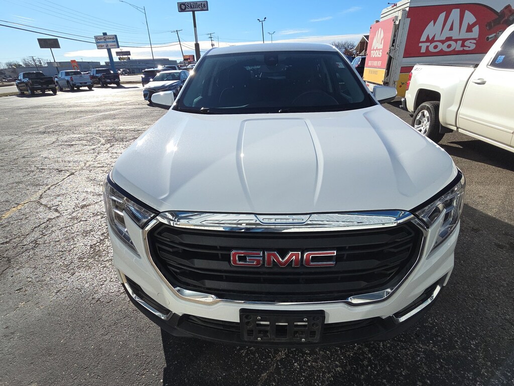 Bluetooth, Rear Camera, Intelink Radio, One Owner, Terrain SLE, 4D Sport Utility, 1.5L DOHC, 9-Speed Automatic, FWD, Summit White, Black Cloth, 2 USB Data Ports w/Auxiliary Input Jack, 3.47 Axle Ratio, 4-Way Manual Driver's Seat, 4-Way Manual Front Passenger Seat, 4-Wheel Disc Brakes, 4.2 Multi-Color Driver Information Screen, 6 Speakers, 6-Speaker Audio System Feature, ABS brakes, Air Conditioning, Alloy wheels, AM/FM radio: SiriusXM, Auto High-beam Headlights, Auto-dimming Rear-View mirror, Automatic temperature control, Bluetooth® For Phone, Brake assist, Bumpers: body-color, Cold Air Grille Shutter, Compass, Delay-off headlights, Deleted 3 Years of OnStar & Connected Services Plan, Driver door bin, Driver vanity mirror, Dual front impact airbags, Dual front side impact airbags, Electronic Stability Control, Emergency communication system: OnStar and GMC connected services capable, Four wheel independent suspension, Front anti-roll bar, Front Bucket Seats, Front Center Armrest, Front reading lights, Fully automatic headlights, Heated door mirrors, Illuminated entry, License Plate Front Mounting Package, Low tire pressure warning, Occupant sensing airbag, Outside temperature display, Overhead airbag, Overhead console, Panic alarm, Passenger door bin, Passenger vanity mirror, Power door mirrors, Power steering, Power windows, Preferred Equipment Group 3SA, Premium Cloth Seat Trim, Radio data system, Radio: GMC Infotainment Audio System w/7 Display, Rear anti-roll bar, Rear seat center armrest, Rear window defroster, Rear window wiper, Remote keyless entry, Security system, SiriusXM Radio, Speed control, Speed-sensing steering, Split folding rear seat, Spoiler, Steering wheel mounted audio controls, Tachometer, Telescoping steering wheel, Tilt steering wheel, Traction control, Trip computer, Variably intermittent wipers, Wheels: 17 x 7 Silver Painted Aluminum, Wireless Apple CarPlay/Wireless Android Auto, Terrain SLE, 4D Sport Utility, 1.5L DOHC, 9-Speed Automatic, FWD, Summit White, Black Cloth. Summit White 2023 GMC Terrain SLE 1.5L DOHC 9-Speed Automatic FWD 4D Sport Utility