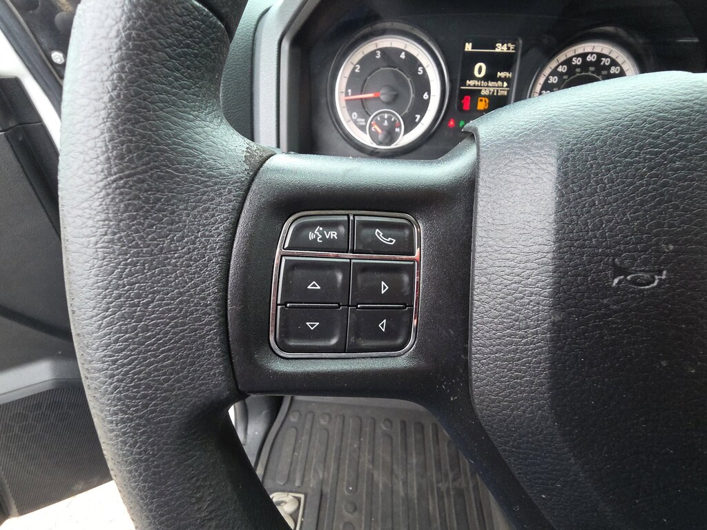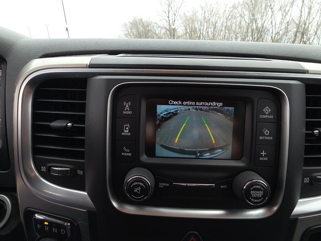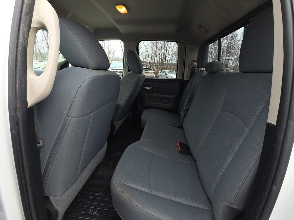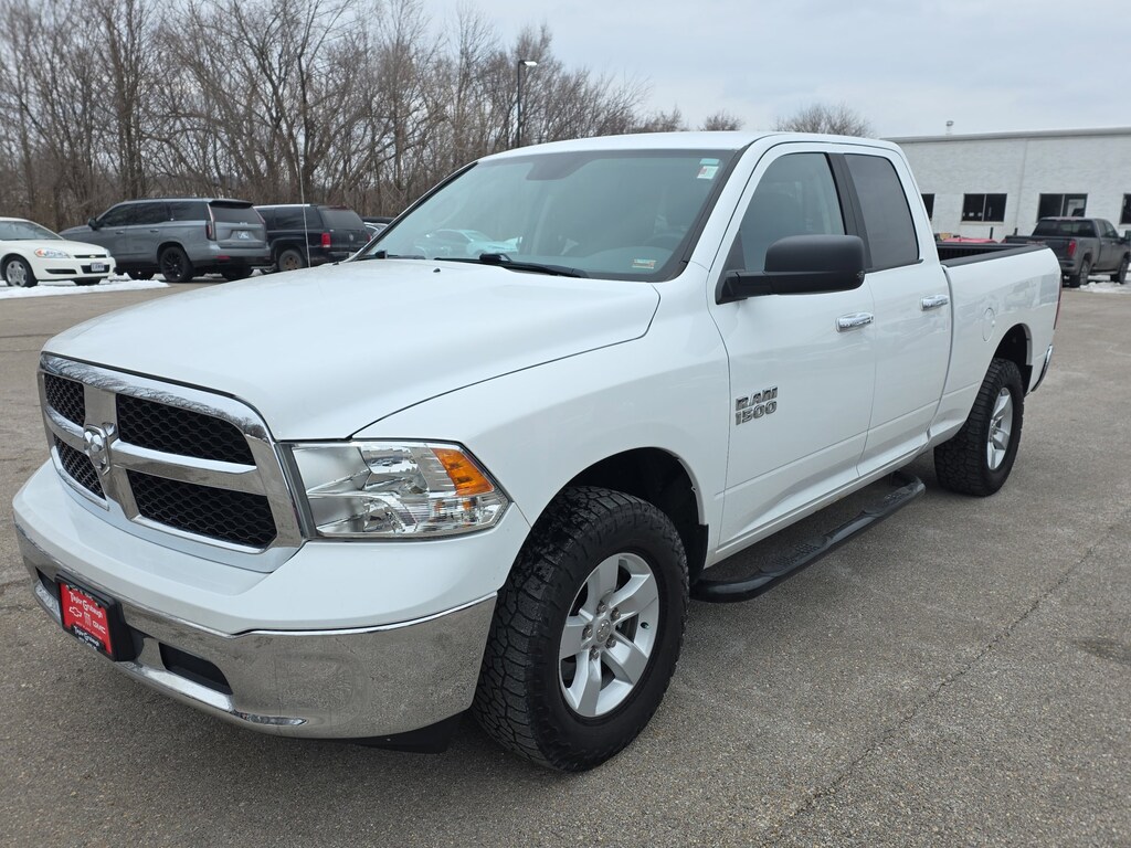 Rear Camera, Low Miles, Local Trade, 1500 SLT, 4D Quad Cab, 3.6L V6 24V VVT, 8-Speed Automatic, 4WD, Bright White Clearcoat, Black Cloth, 3.21 Rear Axle Ratio, 4-Wheel Disc Brakes, 40/20/40 Split Bench Seat, 6 Speakers, ABS brakes, Active Grille Shutters, Air Conditioning, Alloy wheels, AM/FM radio: SiriusXM, Black Exterior Mirrors, Brake assist, Bumpers: chrome, Center Hub, Charge Only Remote USB Port, Compass, Delay-off headlights, Driver door bin, Dual front impact airbags, Dual front side impact airbags, Electronic Shift, Electronic Stability Control, Exterior Mirrors w/Heating Element, Front anti-roll bar, Front Armrest w/3 Cupholders, Front Center Armrest w/Storage, Front reading lights, Front wheel independent suspension, Fully automatic headlights, GPS Antenna Input, Heated door mirrors, Illuminated entry, Integrated Voice Command w/Bluetooth, Low tire pressure warning, Manufacturer's Statement of Origin, Occupant sensing airbag, Outside temperature display, Overhead airbag, Overhead console, Panic alarm, ParkView Rear Back-Up Camera, Passenger door bin, Passenger vanity mirror, Power door mirrors, Power steering, Power windows, Radio data system, Rear anti-roll bar, Rear Power Sliding Window, Rear step bumper, Remote keyless entry, SiriusXM Satellite Radio, Speed control, Tachometer, Tilt steering wheel, Tip Start, Traction control, Trip computer, Variably intermittent wipers, Voltmeter, 1500 SLT, 4D Quad Cab, 3.6L V6 24V VVT, 8-Speed Automatic, 4WD, Bright White Clearcoat, Black Cloth. Bright White Clearcoat 2018 Ram 1500 SLT 3.6L V6 24V VVT 8-Speed Automatic 4WD 4D Quad Cab